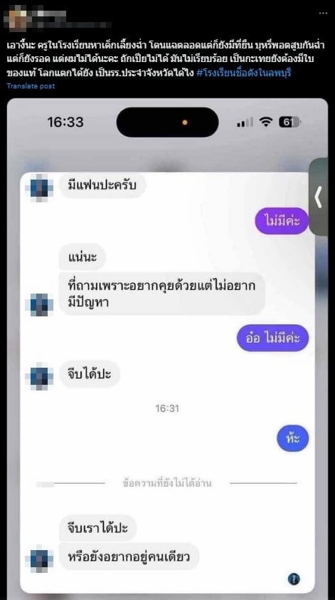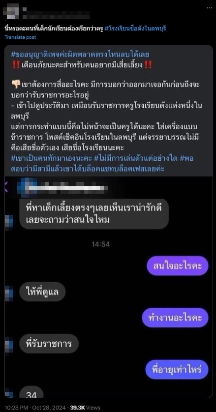 ผุด #โรงเรียนชื่อดังในลพบุรี แฉ ครู หมวดสังคม ไล่ทักแชตผู้หญิง ขอเป็นเสี่ยเลี้ยง