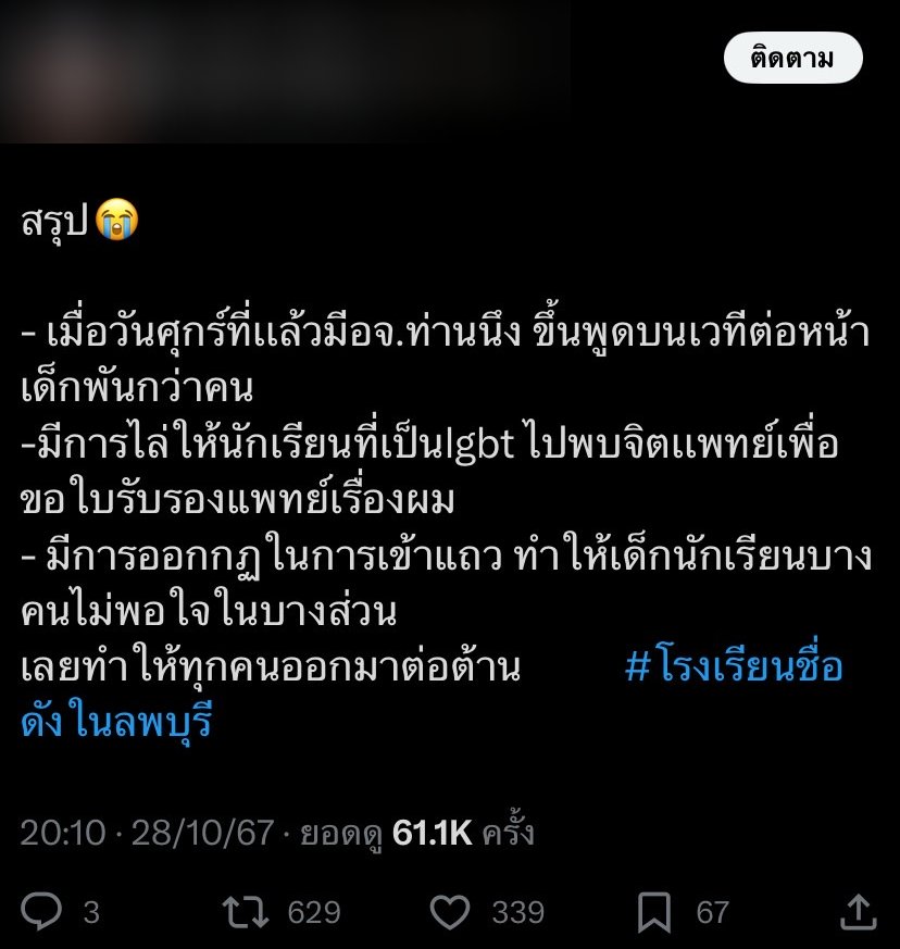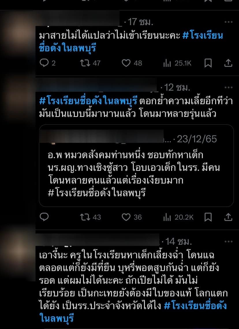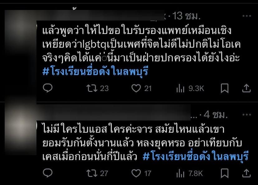 โซเชียลเดือด ผุดแฮชแท็ก #โรงเรียนชื่อดังในลพบุรี แฉยับ กฎภายในเหยียด lgbtqa+ แถม ครูชาย ทำเรื่องฉาวไล่ทักผู้หญิงไปทั่วขอเป็นเสี่ยเลี้ยง