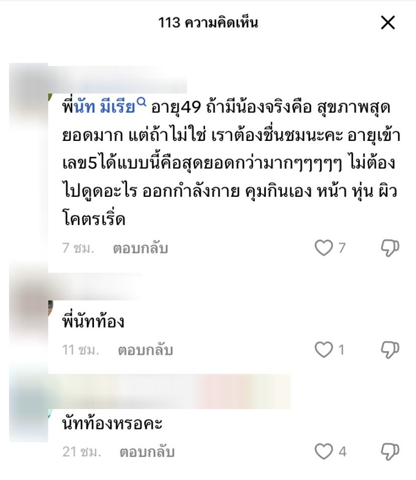 ทว่าก็มีบางคนลองสืบค้นไล่ดูภาพเก่า ๆ ของ นัท มีเรีย และมาคอมเมนต์ตอบกลับว่า น่าจะเป็นหุ่นปกติมีพุงหมาน้อย เพราะรูปจากปีที่แล้วท้องก็เป็นแบบนี้