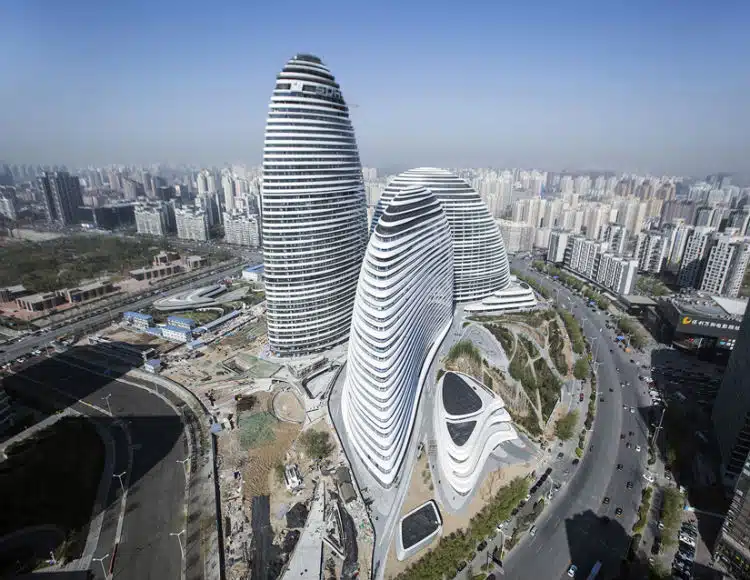 โครงการหวังจิง โซโห ตั้งอยู่ทางตะวันออกเฉียงเหนือของปักกิ่ง ใกล้กับเขตศิลปะ 798 ประกอบด้วยอาคารโค้งสามหลังที่มีความสูง 387, 417 และ 656 ฟุตตามลำดับ ดูคล้ายก้อนหินยักษ์สามก้อน มีพื้นที่ใช้สอย 500,000 ตารางเมตร