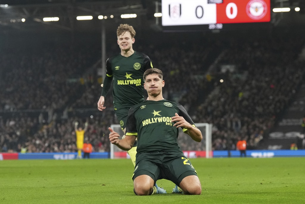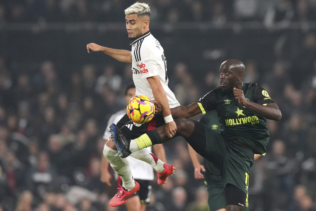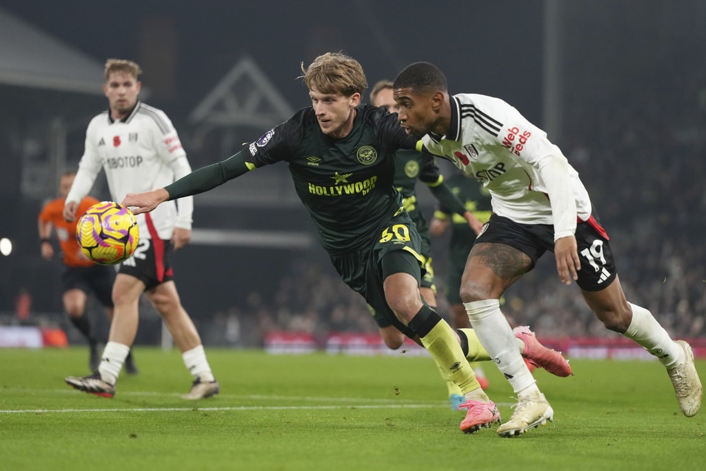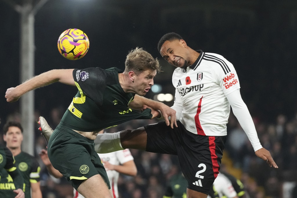 Fulham’s Alex Iwobi, left vies for the ball with Brentford’s Sepp van den Berg during the English Premier League soccer match between Fulham and Brentford at Craven Cottage stadium in London, Monday, Nov. 4, 2024. (AP Photo/Frank Augstein)Fulham’s Harry Wilson shoots at goal during the English Premier League soccer match between Fulham and Brentford at Craven Cottage stadium in London, Monday, Nov. 4, 2024. (AP Photo/Frank Augstein)Fulham’s Reiss Nelson, right defends the ball from Brentford’s Mads Roerslev during the English Premier League soccer match between Fulham and Brentford at Craven Cottage stadium in London, Monday, Nov. 4, 2024. (AP Photo/Frank Augstein)Fulham’s Reiss Nelson, right, vies for the ball with Brentford’s Mads Roerslev during the English Premier League soccer match between Fulham and Brentford at Craven Cottage stadium in London, Monday, Nov. 4, 2024. (AP Photo/Frank Augstein)Fulham’s Raul Jimenez, top right, head the ball towards goal under pressure from Brentford’s Ethan Pinnock during the English Premier League soccer match between Fulham and Brentford at Craven Cottage stadium in London, Monday, Nov. 4, 2024. (AP Photo/Frank Augstein)Fulham’s Andreas Pereira, left, vies for the ball with Brentford’s Yoane Wissa during the English Premier League soccer match between Fulham and Brentford at Craven Cottage stadium in London, Monday, Nov. 4, 2024. (AP Photo/Frank Augstein)Brentford’s Vitaly Janelt celebrates after scoring the opening goal of the game during the English Premier League soccer match between Fulham and Brentford at Craven Cottage stadium in London, Monday, Nov. 4, 2024. (AP Photo/Frank Augstein)Brentford’s Nathan Collins, left ,leaps to head the ball with Fulham’s Kenny Tete during the English Premier League soccer match between Fulham and Brentford at Craven Cottage stadium in London, Monday, Nov. 4, 2024. (AP Photo/Frank Augstein)