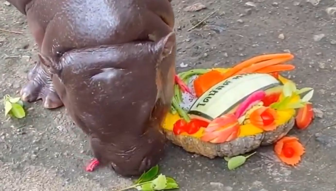 โดยทางทีมงานได้นำผลไม้สองถาดมาวางไว้ ข้างหนึ่งเขียนโดนัลด์ ทรัมป์ อีกข้างเขียน กมลา แฮร์ริส ก่อนที่ หมูเด้งจะเลือกกินจากถาดโดนัลด์ ทรัมป์ ซึ่งทางสวนสัตว์เขียนข้อความเพิ่มเติมว่า “น้องเลือกทรัมป์ เพราะ..แก้วมังกรชิ้นใหญ่กว่า”