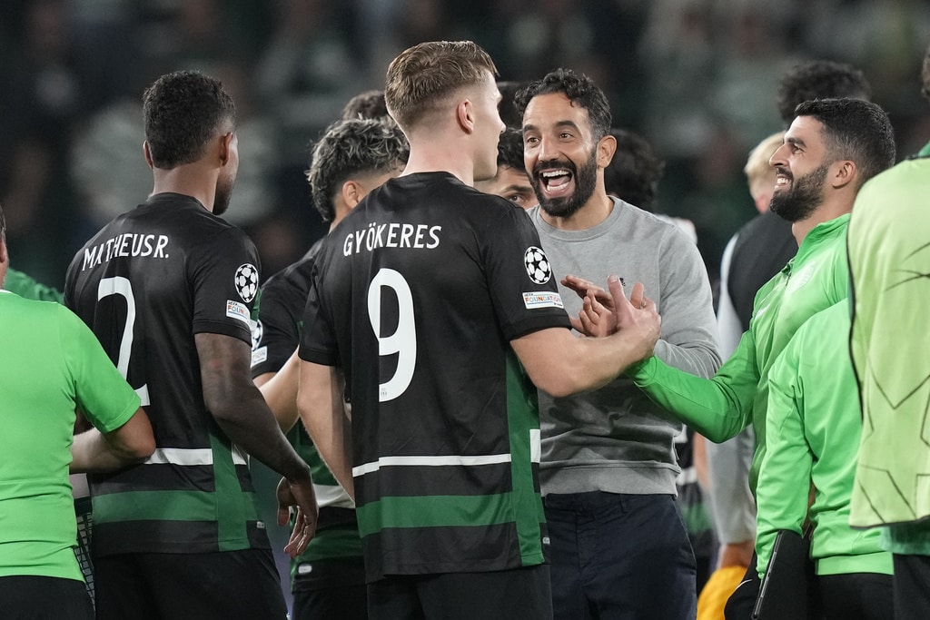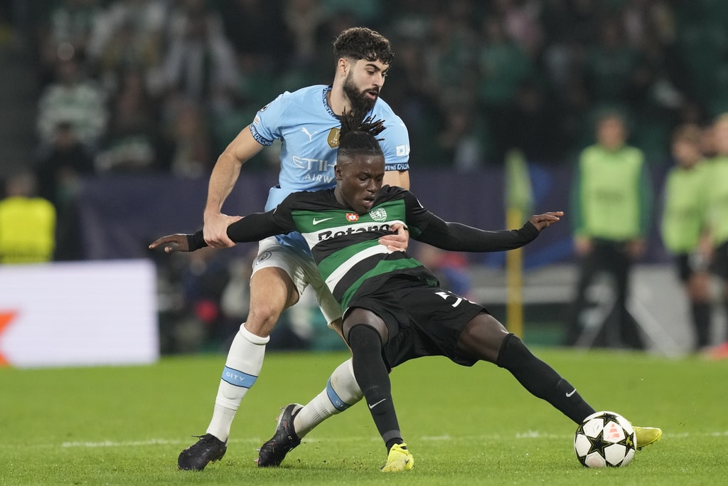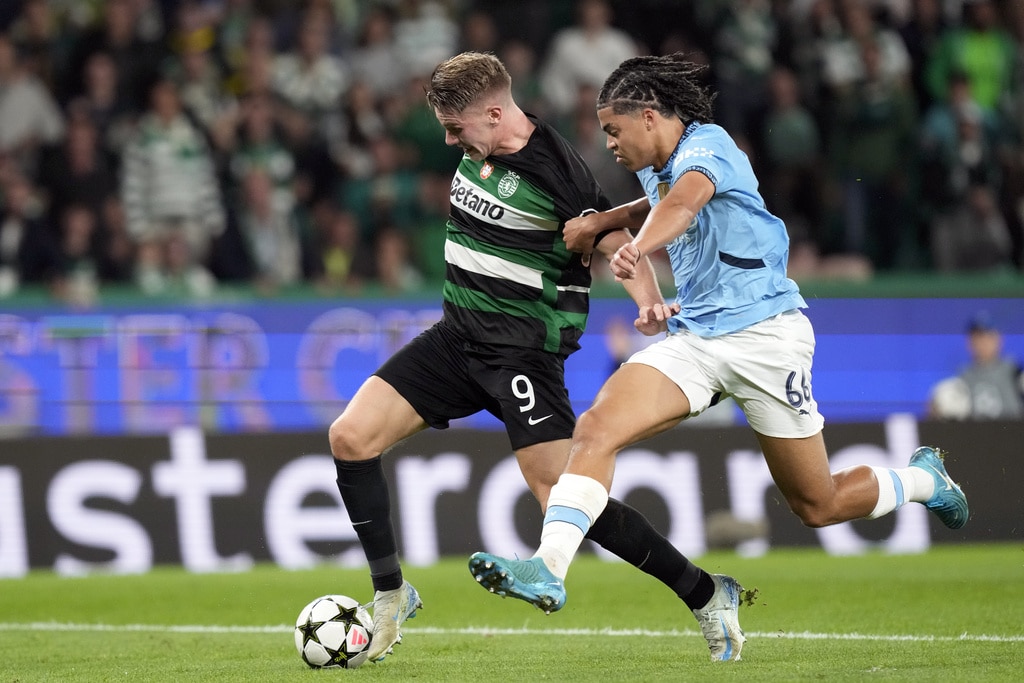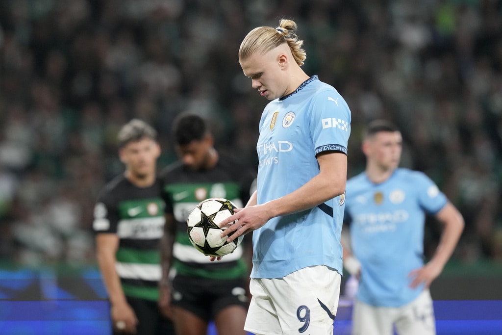 Sporting’s Viktor Gyoekeres celebrates after scoring during the UEFA Champions League opening phase soccer match between Sporting and Manchester City in Lisbon, Portugal, Tuesday, November 5, 2024. (AP Photo/Armando Franca)Manchester City’s Erling Haaland prepares to take a penalty kick during the Champions League opening phase soccer match between Sporting CP and Manchester City at the Alvalade stadium in Lisbon, Tuesday, Nov. 5, 2024. (AP Photo/Armando Franca)Sporting’s Viktor Gyoekeres runs with the ball during the Champions League opening phase soccer match between Sporting CP and Manchester City at the Alvalade stadium in Lisbon, Tuesday, Nov. 5, 2024. (AP Photo/Armando Franca)Sporting’s Viktor Gyoekeres, left, avoids Manchester City’s Jahmai Simpson-Pusey to shoot and score his side’s first goal during the Champions League opening phase soccer match between Sporting CP and Manchester City at the Alvalade stadium in Lisbon, Tuesday, Nov. 5, 2024. (AP Photo/Armando Franca)Sporting’s head coach Ruben Amorim leaves the pitch after the UEFA Champions League opening phase match between Sporting and Manchester City in Lisbon, Portugal, Tuesday, Nov. 5, 2024. (AP Photo/Armando Franca)Sporting’s head coach Ruben Amorim congratulates Viktor Gyoekeres after scoring a hat trick during the UEFA Champions League opening phase match between Sporting and Manchester City in Lisbon, Portugal, Tuesday, November 5, 2024. (AP Photo/Armando Franca)Sporting’s Ousmane Diomande, left, and Manchester City’s Bernardo Silva fight for the ball during the UEFA Champions League opening phase match between Sporting and Manchester City in Lisbon, Portugal, Tuesday, Nov. 5, 2024. (AP Photo/Armando Franca)Sporting’s Geovany Quenda, front, and Manchester City’s Josko Gvardiol fight for the ball during the UEFA Champions League opening phase match between Sporting and Manchester City in Lisbon, Portugal, Tuesday, Nov. 5, 2024. (AP Photo/Armando Franca)