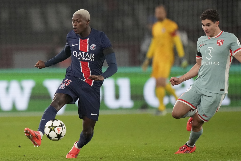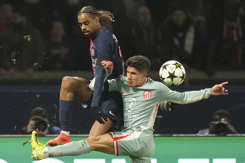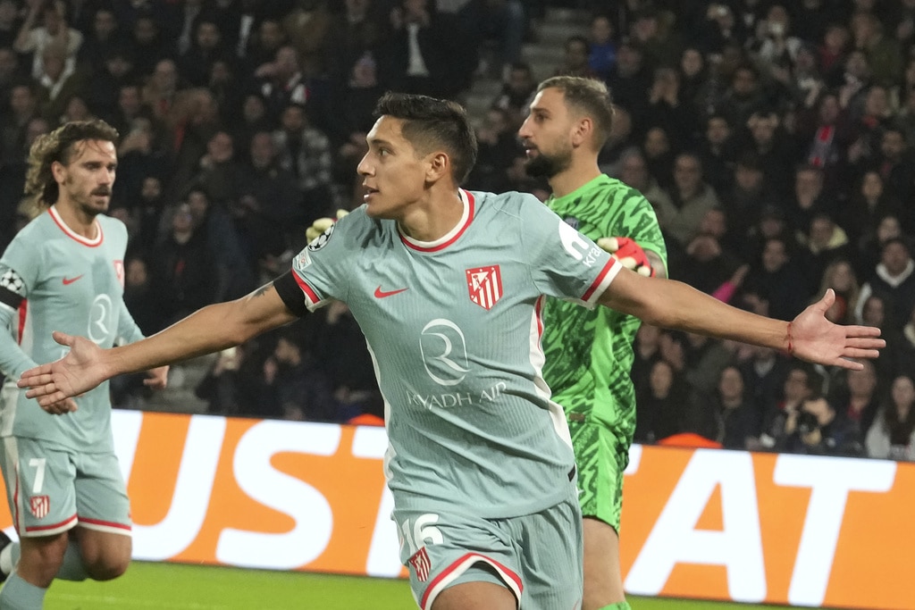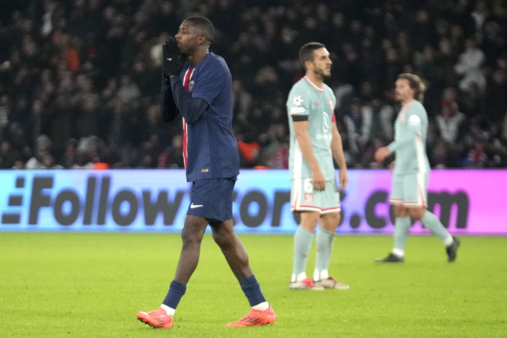 PSG’s Ousmane Dembele reacts during the Champions League opening phase soccer match between Paris Saint Germain and Atletico Madrid, at the Parc des Princes stadium, in Paris, Wednesday, Nov. 6, 2024. (AP Photo/Michel Euler)Atletico Madrid’s Conor Gallagher, right, and PSG’s Ousmane Dembele fight for the ball during the Champions League opening phase soccer match between Paris Saint Germain and Atletico Madrid, at the Parc des Princes stadium, in Paris, Wednesday, Nov. 6, 2024. (AP Photo/Michel Euler)Atletico Madrid’s Rodrigo De Paul, right, and PSG’s Joao Neves fight for the ball during the Champions League opening phase soccer match between Paris Saint Germain and Atletico Madrid, at the Parc des Princes stadium, in Paris, Wednesday, Nov. 6, 2024. (AP Photo/Michel Euler)PSG’s Bradley Barcola, left, and Atletico Madrid’s Giuliano Simeone, right, fight for the ball during the Champions League opening phase soccer match between Paris Saint Germain and Atletico Madrid, at the Parc des Princes stadium, in Paris, Wednesday, Nov. 6, 2024. (AP Photo/Michel Euler)Atletico Madrid’s Nahuel Molina celebrates after scoring during the Champions League opening phase soccer match between Paris Saint Germain and Atletico Madrid at the Parc des Princes stadium in Paris, Wednesday, Nov. 6, 2024. (AP Photo/Michel Euler)PSG’s Nuno Mendes, left, controls the ball by Atletico Madrid’s Julian Alvarez during the Champions League opening phase soccer match between Paris Saint Germain and Atletico Madrid at the Parc des Princes stadium in Paris, Wednesday, Nov. 6, 2024. (AP Photo/Michel Euler)Atletico Madrid’s head coach Diego Simeone reacts during the Champions League opening phase soccer match between Paris Saint Germain and Atletico Madrid at the Parc des Princes stadium in Paris, Wednesday, Nov. 6, 2024. (AP Photo/Michel Euler)