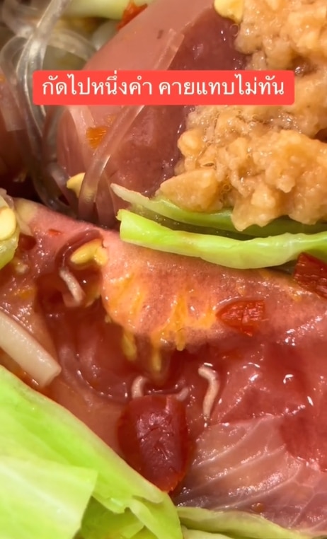 สาวเจอหนอนในยำ พลิกดูถึงรู้ความจริง แม่ค้าใส่ของเน่าให้ลูกค้ากิน