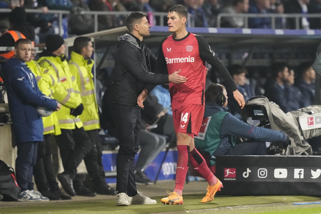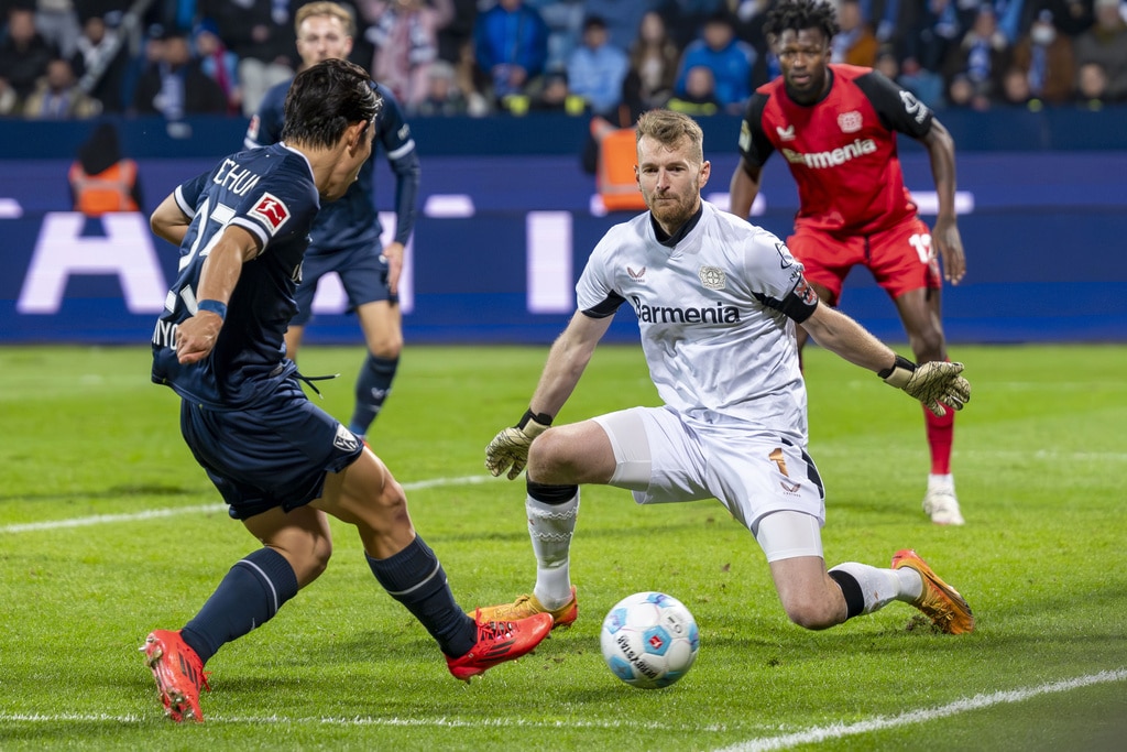 Bochum’s Anthony Losilla, left, and Leverkusen’s Florian Wirtz fight for the ballduring the German Bundesliga soccer match between VfL Bochum and Bayer Leverkusen in Bochum, Germany, Saturday, Nov. 9, 2024. (AP Photo/Martin Meissner)Bochum’s Koji Miyoshi celebrates after scoring during the German Bundesliga soccer match between VfL Bochum and Bayer Leverkusen in Bochum, Germany, Saturday, Nov. 9, 2024. (AP Photo/Martin Meissner)Bochum’s Koji Miyoshi, left, scores his side’s first goal during the German Bundesliga soccer match between VfL Bochum and Bayer 04 Leverkusen in Bochum, Germany, Saturday, Nov. 9, 2024. (David Inderlied/dpa via AP)Leverkusen’s Piero Hincapie heads the ball in front of Bochum’s Philipp Hofmann during the German Bundesliga soccer match between VfL Bochum and Bayer Leverkusen in Bochum, Germany, Saturday, Nov. 9, 2024. (AP Photo/Martin Meissner)Bochum’s Dani de Wit, left, and Leverkusen’s Granit Xhaka jump for the ball during the German Bundesliga soccer match between VfL Bochum and Bayer Leverkusen in Bochum, Germany, Saturday, Nov. 9, 2024. (AP Photo/Martin Meissner)Bochum’s Koji Miyoshi reaches for the by Leverkusen’s Florian Wirtz during the German Bundesliga soccer match between VfL Bochum and Bayer Leverkusen in Bochum, Germany, Saturday, Nov. 9, 2024. (AP Photo/Martin Meissner)Leverkusen’s head coach Xabi Alonso substitutes Patrik Schick during the German Bundesliga soccer match between VfL Bochum and Bayer Leverkusen in Bochum, Germany, Saturday, Nov. 9, 2024. (AP Photo/Martin Meissner)Bochum’s Felix Passlack pulls Leverkusen’s Florian Wirtz during the German Bundesliga soccer match between VfL Bochum and Bayer Leverkusen in Bochum, Germany, Saturday, Nov. 9, 2024. (AP Photo/Martin Meissner)