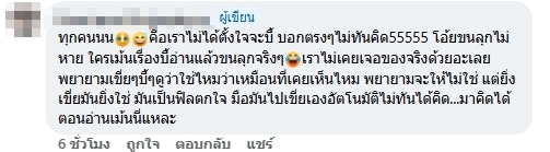 “ทุกคนนน คือเราไม่ได้ตั้งใจจะบี้ บอกตรง ๆ ไม่ทันคิด 55555 โอ้ยขนลุกไม่หาย ใครเม้นเรื่องบี้อ่านแล้วขนลุกจริง ๆ เราไม่เคยเจอของจริงด้วยอะเลยพยายามเขี่ยๆบี้ๆดูว่าใช่ไหมว่าเหมือนที่เคยเห็นไหม พยายามจะให้ไม่ใช่ แต่ยิ่งเขี่ยมันยิ่งใช่ มันเป็นฟิลตกใจ มือมันไปเขี่ยเองอัตโนมัติไม่ทันได้คิด…มาคิดได้ตอนอ่านเม้นนี่แหละ”