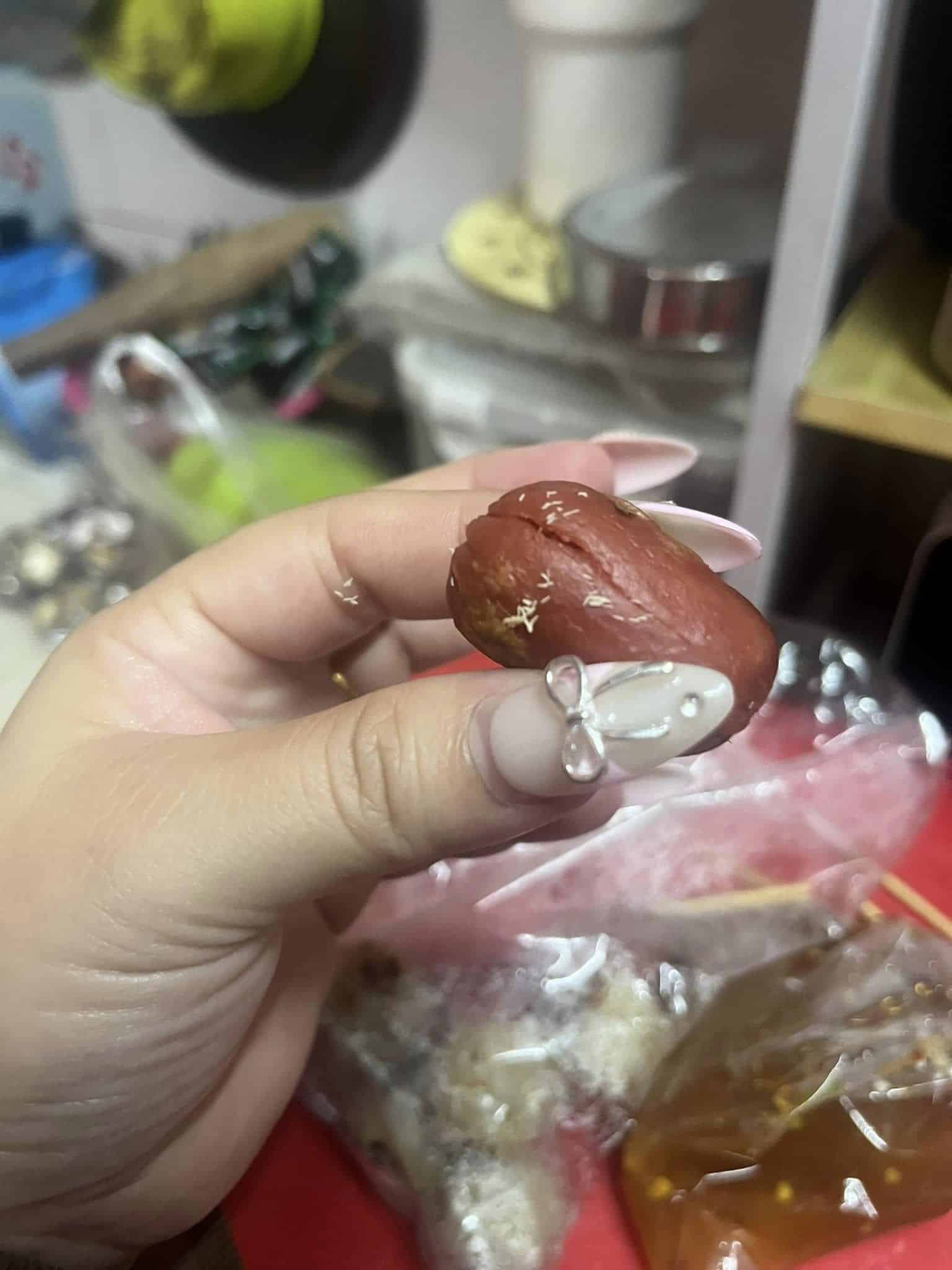 ของแถมร้านข้างทาง สาวซื้อไส้กรอกแดงทอด เจอไข่แมลงวันเกาะเต็ม เห็นแล้วขนลุก
