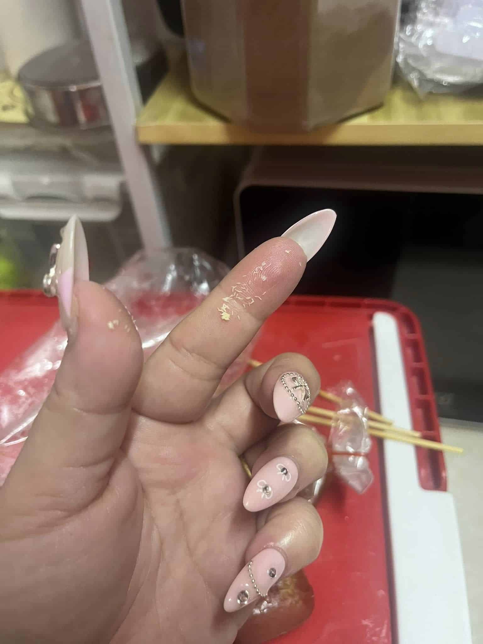 “มันใช่ไหมคะ กำลังจะเข้าปากเห็นอะไรขาว ๆ เลยเขี่ยดู ช็อคค่ะ (จริงๆมันกองรวมกันในรูปเราเขี่ยดู) ลูกชิ้นข้างทางปกติจะราดเลยกินแบบไม่ดู แต่วันนี้แยกน้ำจิ้มเลยได้หยิบมาดูมาเข้าปาก