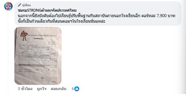 นอกจากนี้ยังบังคับต้องไปเรียนรู้ปรับพื้นฐานกับสถาบันภายนอกโรงเรียนอีก คอร์ทละ 7,900 บาท ซึ่งก็เป็นก๊วนเดียวกันที่สอนคอมฯในโรงเรียนนั่นแหล่ะ