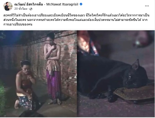 บอสณวัฒน์ จวกเละฉาก ‘วางยาสลบแมว’ ในละครดัง แม่หยัว ลั่น “ไม่สนับสนุนการทารุณสัตว์ การทำละครไม่ควรต้องเบียดเบียนชีวิตแมว สุดท้ายมันได้อะไรจากฉากนี้”