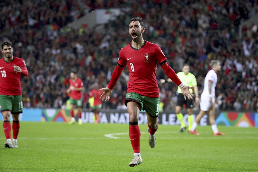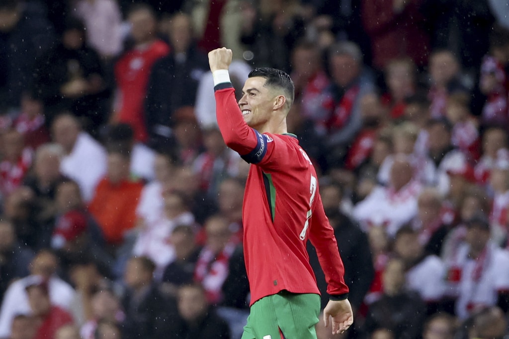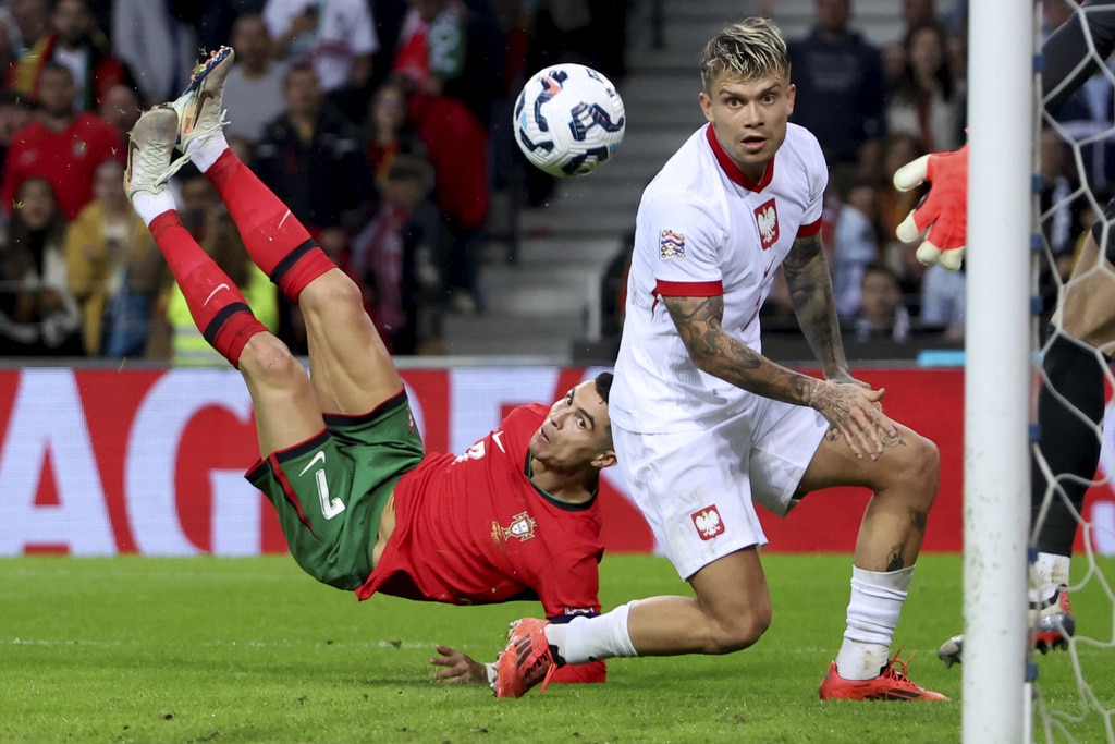 Portugal’s Rafael Leao, right, vies for the ball with Poland’s Nicola Zalewski during the UEFA Nations League soccer match between Portugal and Poland at the Dragao stadium in Porto, Portugal, Friday, Nov. 15, 2024. (AP Photo/Luis Vieira)Portugal’s Diogo Dalot, left, runs with the ball away from Poland’s Kacper Urbanski during the UEFA Nations League soccer match between Portugal and Poland at the Dragao stadium in Porto, Portugal, Friday, Nov. 15, 2024. (AP Photo/Luis Vieira)Portugal’s Rafael Leao vies for the ball with Poland’s Jakub Kaminski, left, during the UEFA Nations League soccer match between Portugal and Poland at the Dragao stadium in Porto, Portugal, Friday, Nov. 15, 2024. (AP Photo/Luis Vieira)Portugal’s Cristiano Ronaldo, left, scores his side’s fifth goal with an overhead kick during the UEFA Nations League soccer match between Portugal and Poland at the Dragao stadium in Porto, Portugal, Friday, Nov. 15, 2024. (AP Photo/Luis Vieira)Portugal’s Cristiano Ronaldo gestures during the UEFA Nations League soccer match between Portugal and Poland at the Dragao stadium in Porto, Portugal, Friday, Nov. 15, 2024. (AP Photo/Luis Vieira)Portugal players celebrate after Pedro Neto, back to camera, scored their fourth goal during the UEFA Nations League soccer match between Portugal and Poland at the Dragao stadium in Porto, Portugal, Friday, Nov. 15, 2024. (AP Photo/Luis Vieira)Portugal’s Bruno Fernandes celebrates after scoring his side’s third goal during the UEFA Nations League soccer match between Portugal and Poland at the Dragao stadium in Porto, Portugal, Friday, Nov. 15, 2024. (AP Photo/Luis Vieira)Portugal’s Cristiano Ronaldo celebrates after scoring his side’s second goal from the penalty spot during the UEFA Nations League soccer match between Portugal and Poland at the Dragao stadium in Porto, Portugal, Friday, Nov. 15, 2024. (AP Photo/Luis Vieira)Portugal’s Cristiano Ronaldo scores his side’s second goal from the penalty spot during the UEFA Nations League soccer match between Portugal and Poland at the Dragao stadium in Porto, Portugal, Friday, Nov. 15, 2024. (AP Photo/Luis Vieira)