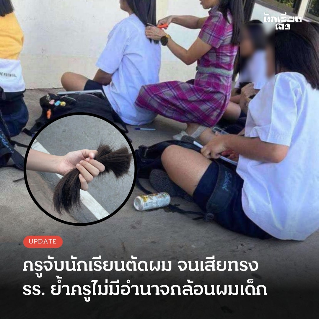 เมื่อวันที่ 15 พ.ย. 2567 ที่ รร. แห่งหนึ่ง ใน อ.บัวใหญ่ จ.นครราชสีมา ครูที่ปรึกษาบังคับนักเรียนหญิงนั่งพื้นปล่อยผม จับตัดผมเรียงคนจนเสียทรง แม้โรงเรียนเคยย้ำในระเบียบว่าครูไม่มีอำนาจตัดผมนักเรียน