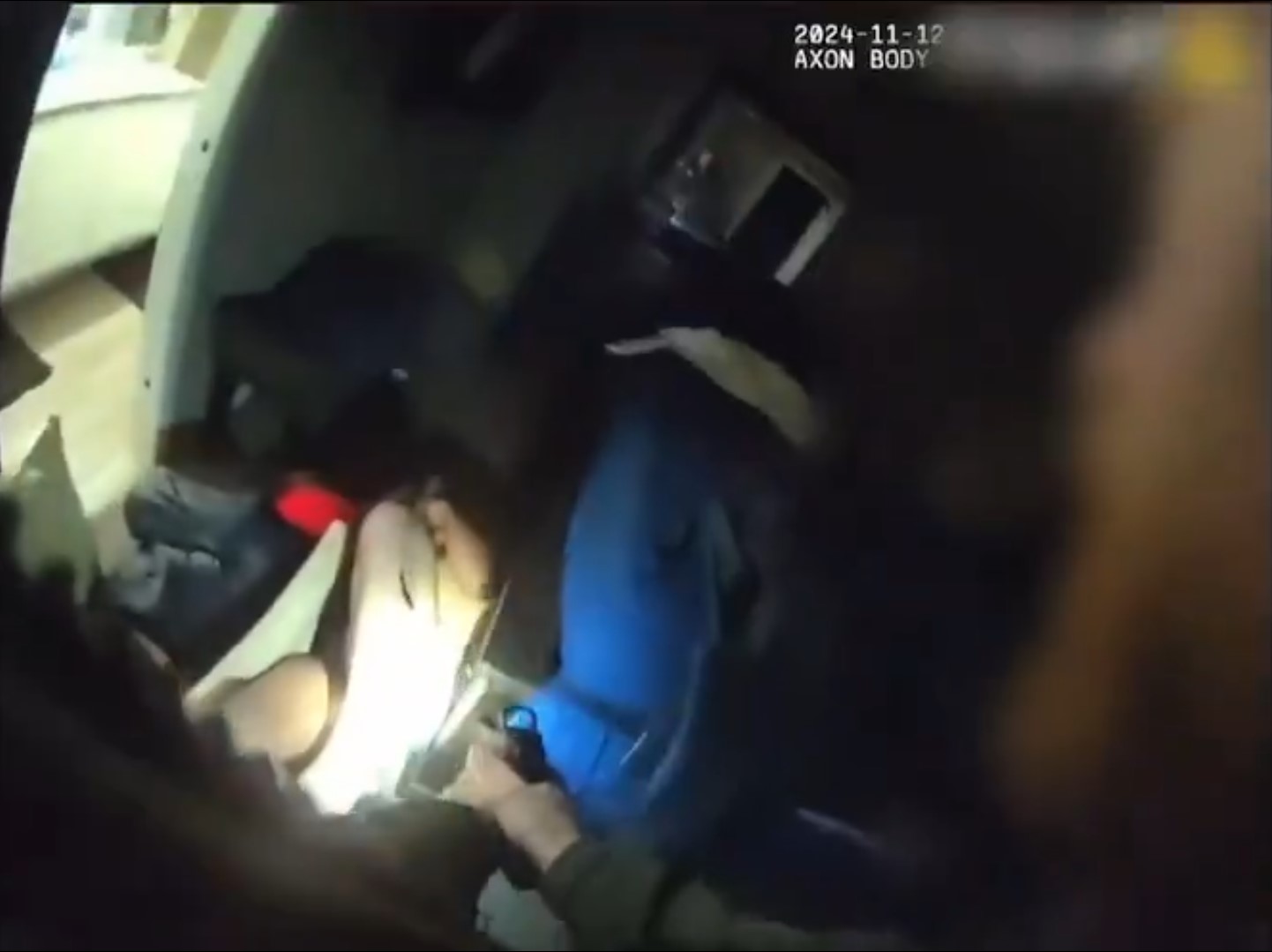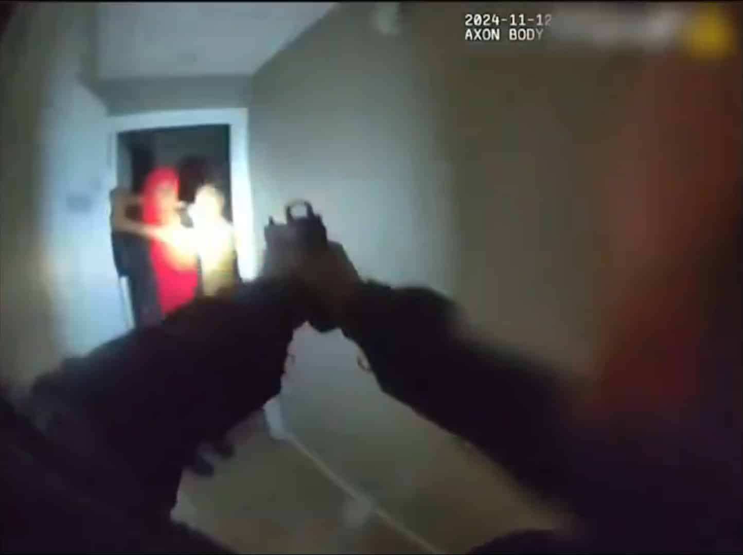 ตำรวจไม่รอช้า รีบบุกไปที่เกิดเหตุทันที ซึ่งจากคลิปวิดดีโอที่ถูกบันทึกผ่านกล้องบอดี้แคมจะเห็นว่าตำรวจได้เจอกับชาย 2 คน คนหนึ่งใส่โม่งสีแดง เสื้อสีแดง พร้อมเสื้อแจ็คเกต ส่วนอีกหนึ่งคนอยู่ในสภาพเปลือยท่อนบน ใส่กางเกงขาสั้นคล้ายบ็อกเซอร์ ส่วนตัวลูกสาววัย 15 ปีแอบซ่อนตัวอยู่ในห้องข้างๆ