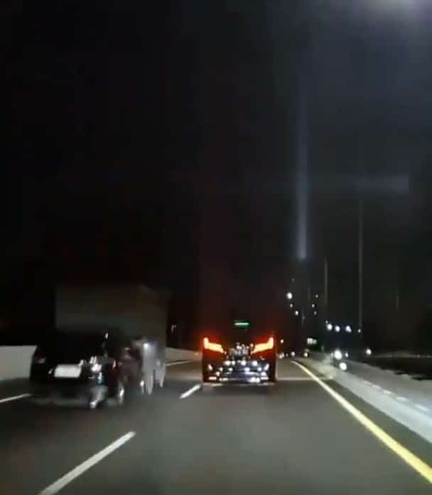 วิดีโอนี้คาดว่าจะมาจากกล้องหน้ารถ จะเห็นว่ามีรถยนย์ SUV สีดำคันหนึ่งได้ขับแซงขึ้นมาด้วยความเร็วสูง จากซ้ายมาขวา และในจังหวะที่เขากำลังจะทำแบบเดิม นั่นคือการมุดจากขวาไปซ้ายเพื่อแซงรถตู้สีดำด้านหน้าที่กำลังเบี่ยงเข้ามาเลนขวา แต่สุดท้ายแซงไม่พ้น ทำให้รถยนต์คนดังกล่าวชนท้ายรถบรรทุก 6 ล้อเข้าไปเต็มๆ