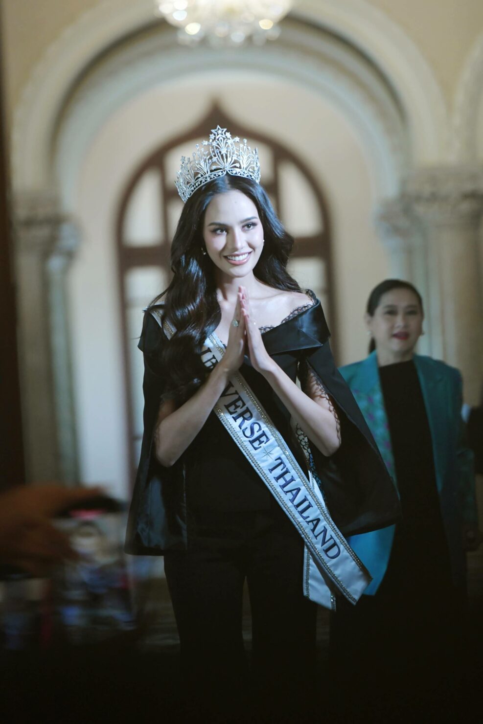 จากนั้นทั้ง 3 คนได้นั่งพูดคุยกัน ซึ่งนายกฯ ได้สอบถามการประกวด ซึ่งนางปิยาภรณ์ ได้บอกว่า การประกวดครั้งนี้ได้นำโจทย์ที่นายกฯ เคยพูดไว้ เกี่ยวกับเรื่องการส่งเสริมวัฒนธรรมไทยซอฟต์พาวเวอร์ ซึ่งน้องโอปอล ได้เรียนคณะรัฐศาสตร์ทางการทูต ความสัมพันธ์ระหว่างประเทศ และได้กำหนดประเด็นขึ้นมาว่า นายกฯ พูดเสมอเรื่องผ้าไทย และการผลักดันเศรษฐกิจชุมชน ให้เกิดความยั่งยืน จึงเป็นที่มาที่น้องโอปอลนำผ้าไทยไปสวมใส่ในการประกวดหลายชุด