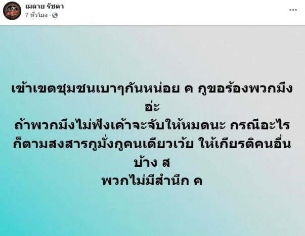 หลังเกิดอุบัติเหตุได้ไม่นาน เมลาย รัชดา หัวหน้าแก๊งน้ำไม่อาบ ก็โพสต์ข้อความผ่านทางเฟซบุ๊กแฟนเพจ ระบุว่า “เข้าเขตชุมชนเบา ๆ กันหน่อย ค กูขอร้องพวกมึงอ่ะ ถ้าพวกมึงไม่ฟังเค้าจะจับให้หมดนะ กรณีอะไรก็ตามสงสารกูมั่งกูคนเดียวเว้ย ให้เกียรติคนอื่นบ้าง ส พวกไม่มีสำนึก ค”