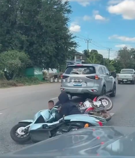 แก๊งน้ำไม่อาบ ซิ่งเกี่ยวรถชาวบ้านล้ม เด็กน้อยบาดเจ็บร้องลั่น