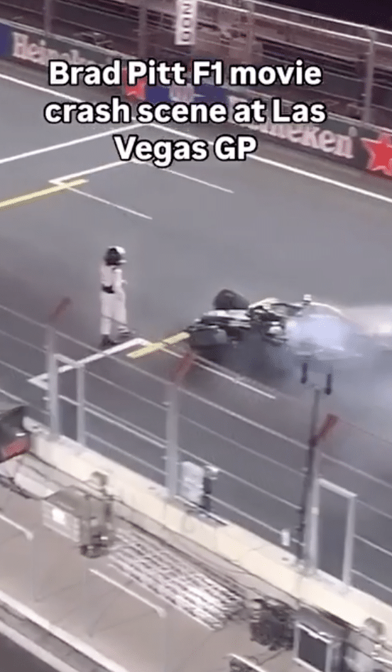 ที่แท้ พิตต์ กำลังถ่ายทำฉากหนึ่งในภาพยนตร์เรื่องใหม่ เกี่ยวกับการแข่งรถ ชื่อ “F1” ซึ่งเขารับบทเป็น “ซันนี่ เฮย์ส” (Sonny Hayes) นักแข่งรถ โดยมี “ลูอิส แฮมิลตัน” (Lewis Hamilton) อดีตแชมป์โลก F1 ร่วมแสดง และ “เจอร์รี่ บรัคไฮเมอร์” (Jerry Bruckheimer) โปรดิวเซอร์ Top Gun เป็นผู้สร้าง