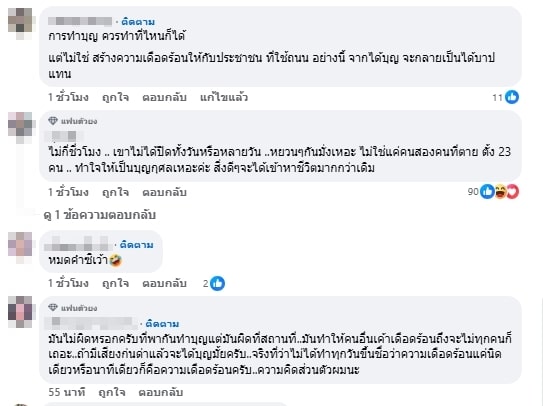 ภายหลังจากที่โพสต์ดังกล่าวถูกเผยแพร่ลงไปก็มีชาวเน็ตเข้ามาแสดงความคิดเห็นกันเป็นจำนวนมาก ซึ่งเสียงแบ่งออกเป็น 2 ฝ่าย คือกลุ่มคนที่เข้าใจในการจัดงานนี้ขึ้น และไม่ได้คิดว่ามันกระทบต่อการเดินทางมากนัก กับอีกกลุ่มที่มองว่า การทำบุญทำที่ไหนก็ได้ แต่ต้องไม่สร้างความเดือดร้อนให้กับประชาชนที่ใช้รถใช้ถนน แล้วยังเลือกทำพิธีเช้าวันจันทร์อีกต่างหาก