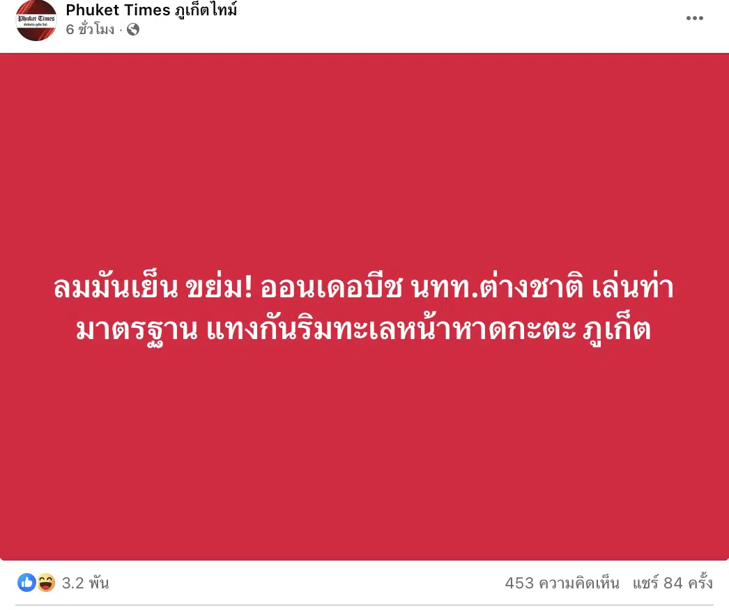 ฝั่งทำฉาวโฉ่อีกครั้งที่จังหวัดภูเก็ต เมื่อเฟซบุ๊ก Phuket Times ภูเก็ตไทม์ เผยแพร่ภาพนักท่องเที่ยวชาวต่างชาติ กำลังมีเพศสัมพันธ์กันอย่างโจ่งแจ้ง ริมชายหาดกะตะ อำเภอเมือง จังหวัดภูเก็ต ในเวลากลางคืน โดยไม่สนใจสายตาประชาชน