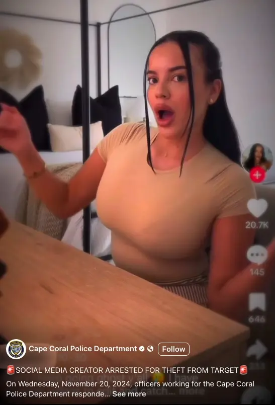 พฤติกรรมแบบนี้ไม่น่าเอาอย่าง ดาวติ๊กต็อก คนดังจากฟลอริดาถูกตำรวจจับ หลังโพสต์คลิปอวดวีรกรรมขโมยของในร้าน