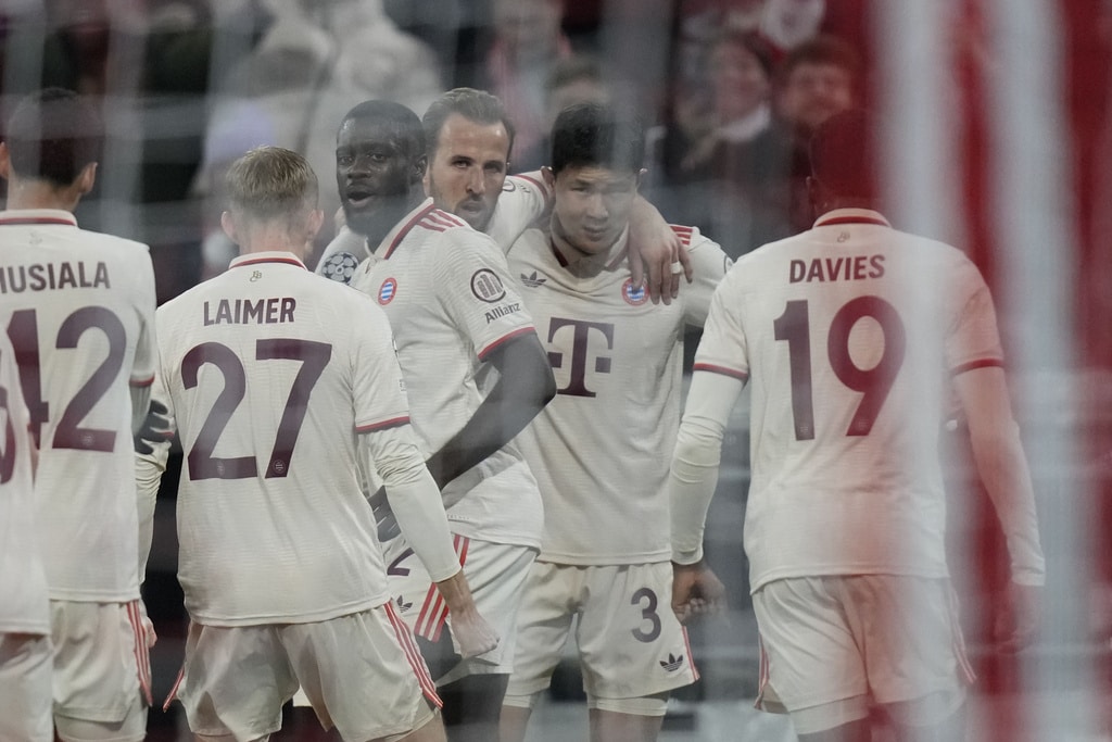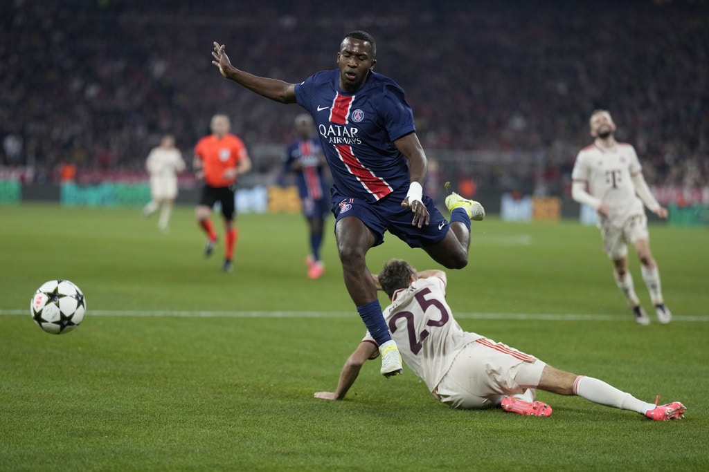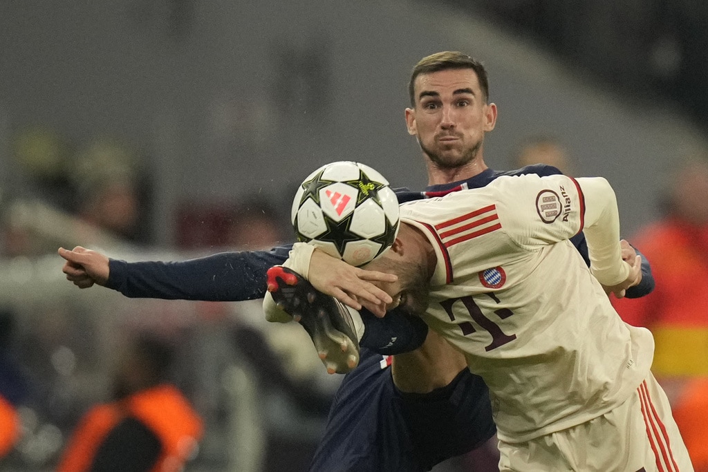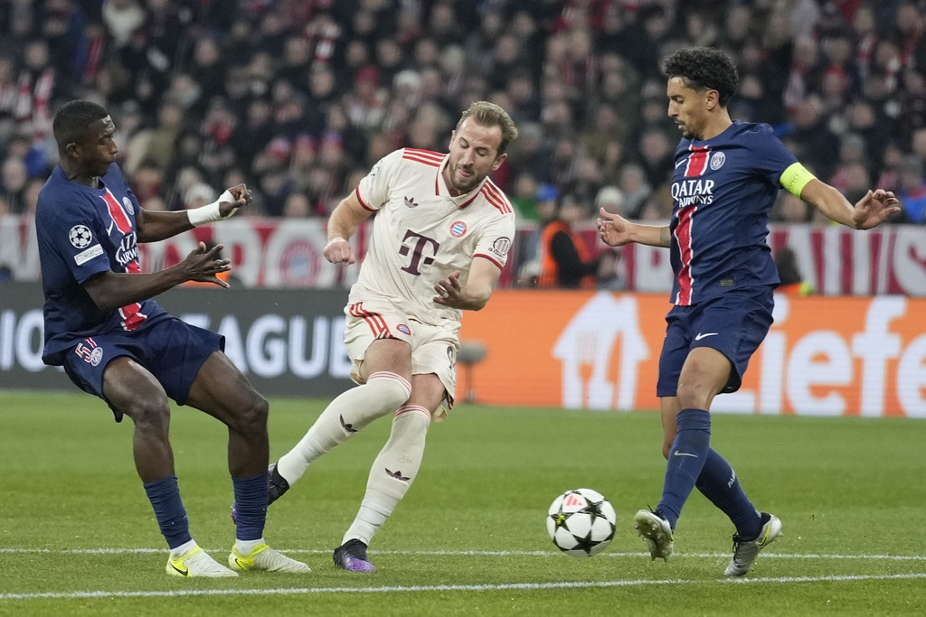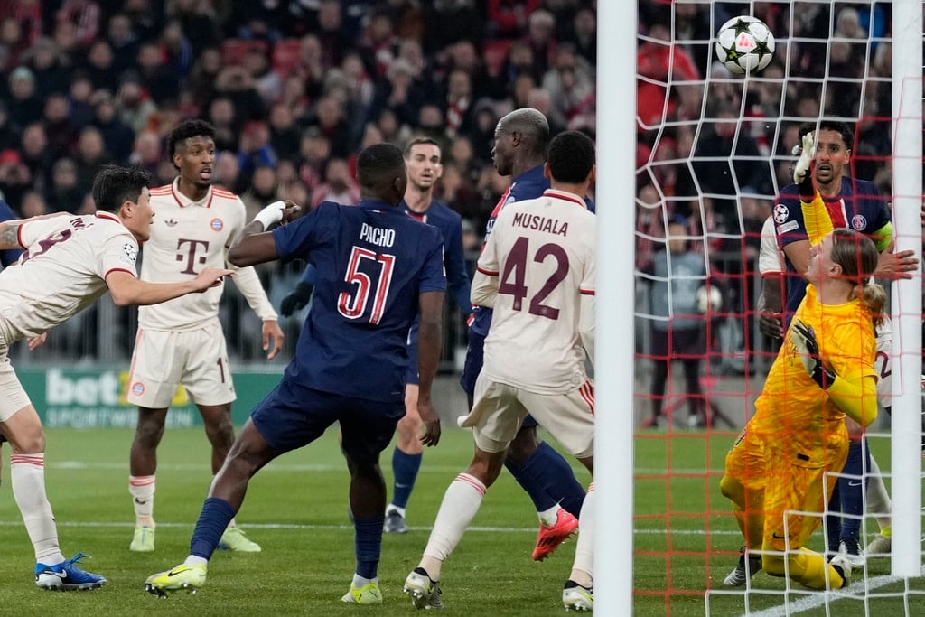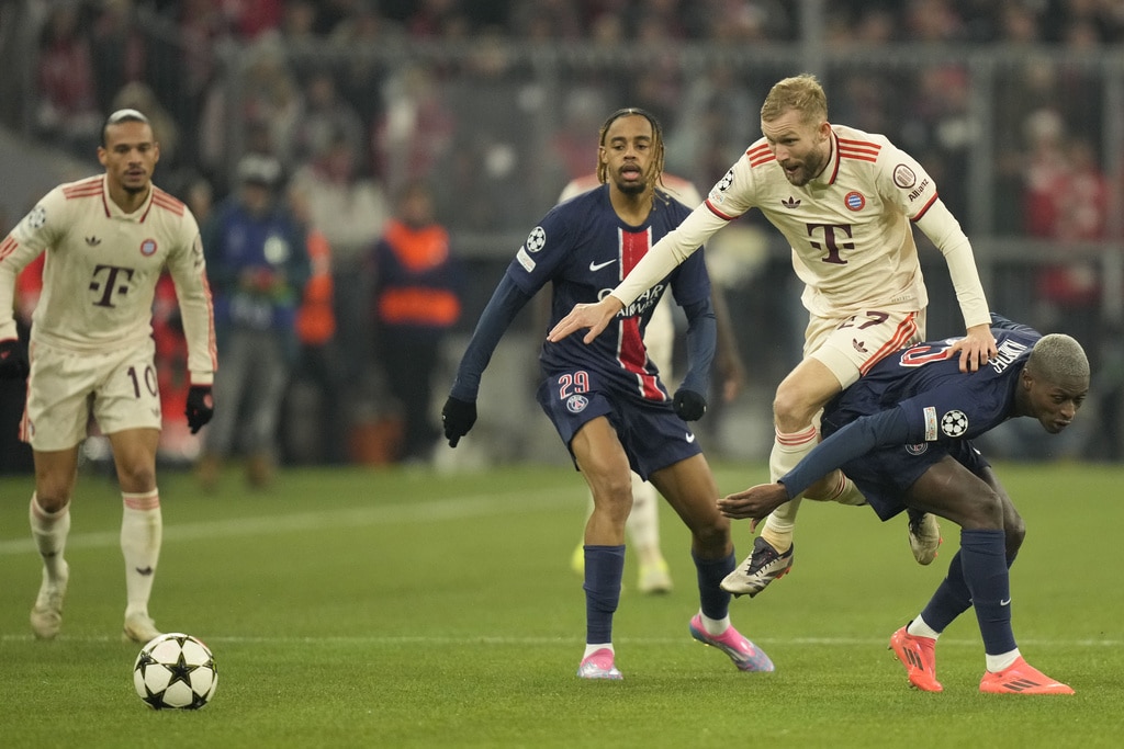 Bayern’s Dayot Upamecano, left, duels for the ball with PSG’s Bradley Barcola during the Champions League opening phase soccer match between FC Bayern and Paris Saint Germain, at the Allianz Arena in Munich, Germany, Tuesday, Nov. 26, 2024.(AP Photo/Matthias Schrader)Bayern’s Michael Olise, left, duels for the ball with PSG’s Willian Pacho during the Champions League opening phase soccer match between FC Bayern and Paris Saint Germain, at the Allianz Arena in Munich, Germany, Tuesday, Nov. 26, 2024.(AP Photo/Matthias Schrader)PSG’s Willian Pacho, top, duels for the ball with Bayern’s Thomas Mueller during the Champions League opening phase soccer match between FC Bayern and Paris Saint Germain, at the Allianz Arena in Munich, Germany, Tuesday, Nov. 26, 2024.(AP Photo/Matthias Schrader)Bayern’s Konrad Laimer, front, duels for the ball with PSG’s Fabian Ruiz during the Champions League opening phase soccer match between FC Bayern and Paris Saint Germain, at the Allianz Arena in Munich, Germany, Tuesday, Nov. 26, 2024.(AP Photo/Matthias Schrader)PSG’s Willian Pacho, left, tries to block a shot from Bayern’s Harry Kane, center, during the Champions League opening phase soccer match between FC Bayern and Paris Saint Germain, at the Allianz Arena in Munich, Germany, Tuesday, Nov. 26, 2024.(AP Photo/Matthias Schrader)Bayern’s Konrad Laimer, second right, duels for the ball with PSG’s Nuno Mendes, right, during the Champions League opening phase soccer match between FC Bayern and Paris Saint Germain, at the Allianz Arena in Munich, Germany, Tuesday, Nov. 26, 2024.(AP Photo/Matthias Schrader)Bayern’s Kim Min-jae, left, scores his side’s opening goal during the Champions League opening phase soccer match between FC Bayern and Paris Saint Germain, at the Allianz Arena in Munich, Germany, Tuesday, Nov. 26, 2024.(AP Photo/Matthias Schrader)Bayern’s Kim Min-jae, second right, celebrates with teammates after scoring the opening goal during the Champions League opening phase soccer match between FC Bayern and Paris Saint Germain, at the Allianz Arena in Munich, Germany, Tuesday, Nov. 26, 2024.(AP Photo/Matthias Schrader)