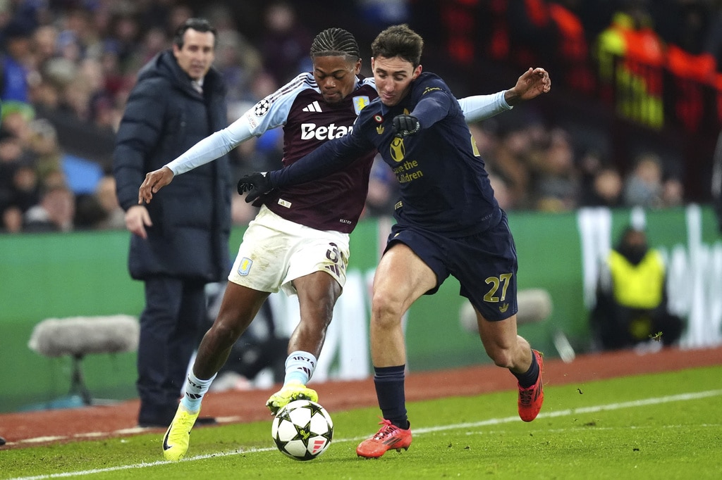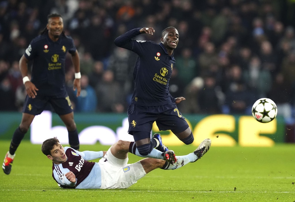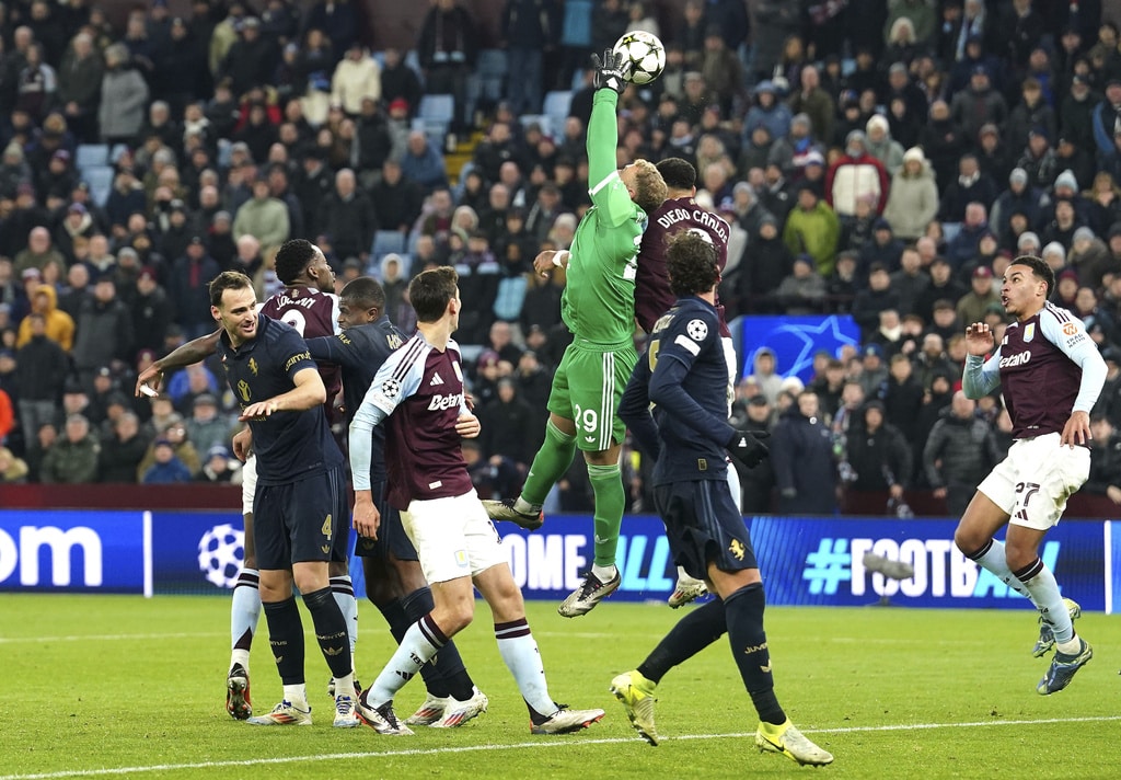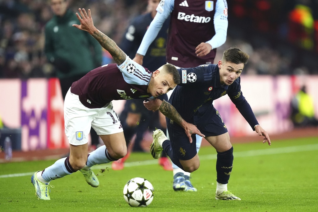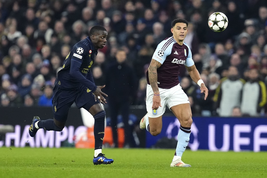 Aston Villa’s Diego Carlos, right, and Juventus’ Timothy Weah battle for the ball during the UEFA Champions League opening phase soccer stage match at Villa Park, Birmingham, England, Wednesday Nov. 27, 2024. (Nick Potts/PA via AP)Aston Villa’s Lucas Digne, left, and Juventus’ Francisco Conceicao battle for the ball during the UEFA Champions League opening phase soccer stage match at Villa Park, Birmingham, England, Wednesday Nov. 27, 2024. (David Davies/PA via AP)Juventus’ Francisco Conceicao, left, and Aston Villa’s Morgan Rogers battle for the ball during the UEFA Champions League opening phase soccer stage match at Villa Park, Birmingham, England, Wednesday Nov. 27, 2024. (Nick Potts/PA via AP)Aston Villa’s Diego Carlos and Juventus’ Timothy Weah battle for the ball during the Champions League opening phase soccer match between Astin Villa and Juventus at Villa Park in Birmingham, England, Wednesday, Nov. 27, 2024. (David Davies/PA via AP)Aston Villa’s goalkeeper Emiliano Martinez talks to his players during the Champions League opening phase soccer match between Astin Villa and Juventus at Villa Park in Birmingham, England, Wednesday, Nov. 27, 2024.(AP Photo/Rui Vieira)Aston Villa’s Diego Carlos battles for the ball with Juventus goalkeeper Michele Di Gregorio during the UEFA Champions League opening phase soccer stage match at Villa Park, Birmingham, England, Wednesday Nov. 27, 2024. (David Davies/PA via AP)Aston Villa goalkeeper Emiliano Martinez makes a save on Juventus’ Francisco Conceicao during the UEFA Champions League opening phase soccer stage match at Villa Park, Birmingham, England, Wednesday Nov. 27, 2024. (Nick Potts/PA via AP)Aston Villa’s Pau Torres, left, tackles Juventus’ Timothy Weah during the Champions League opening phase soccer match between Astin Villa and Juventus at Villa Park in Birmingham, England, Wednesday, Nov. 27, 2024. (David Davies/PA via AP)