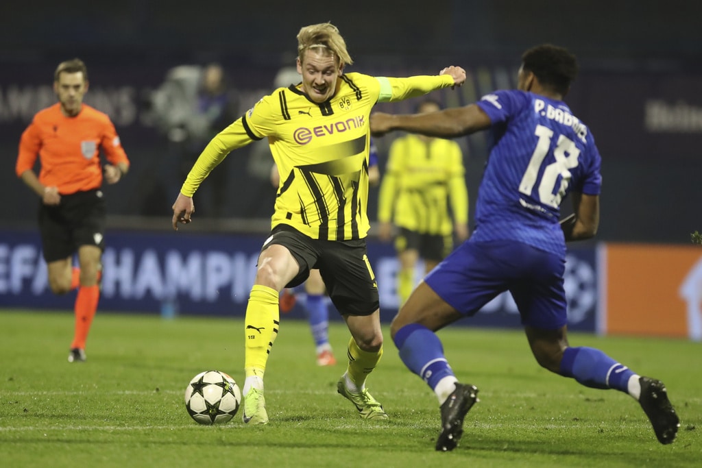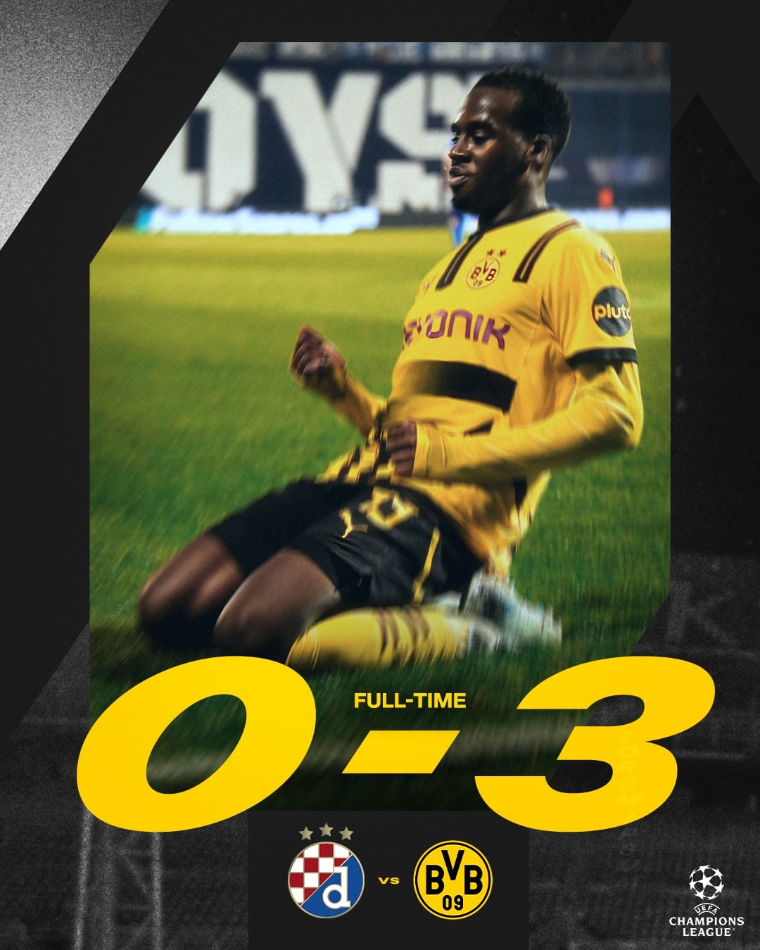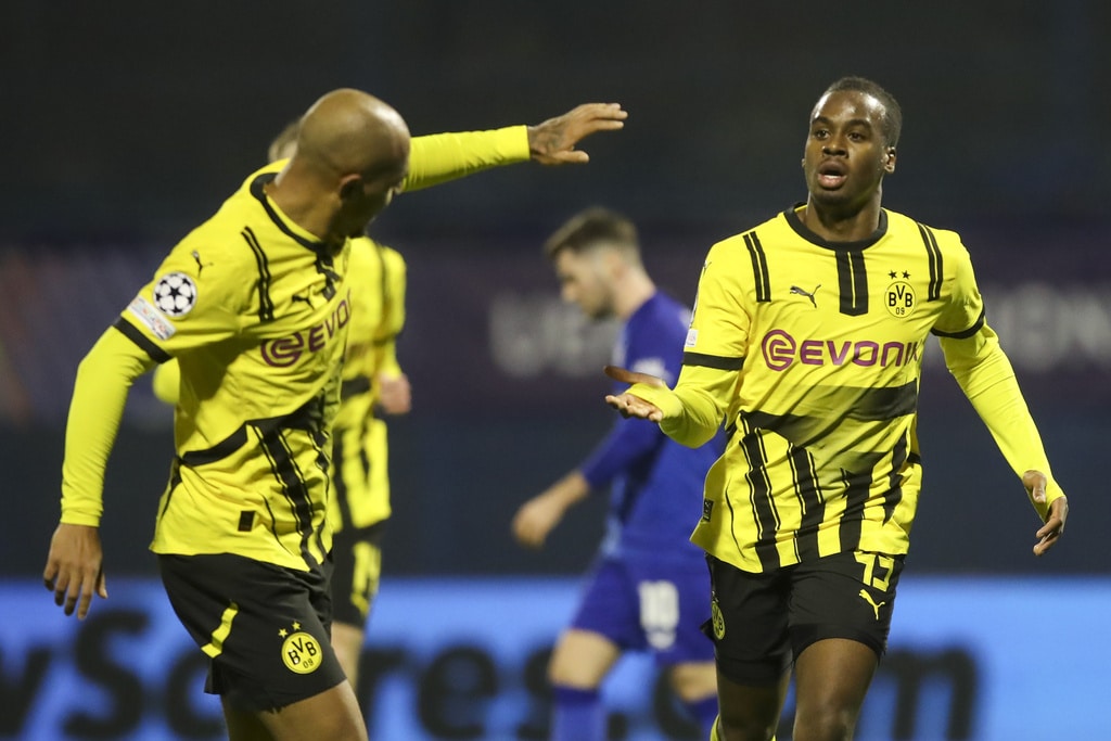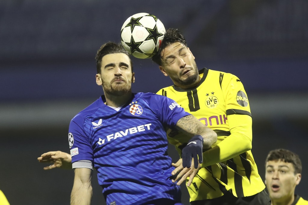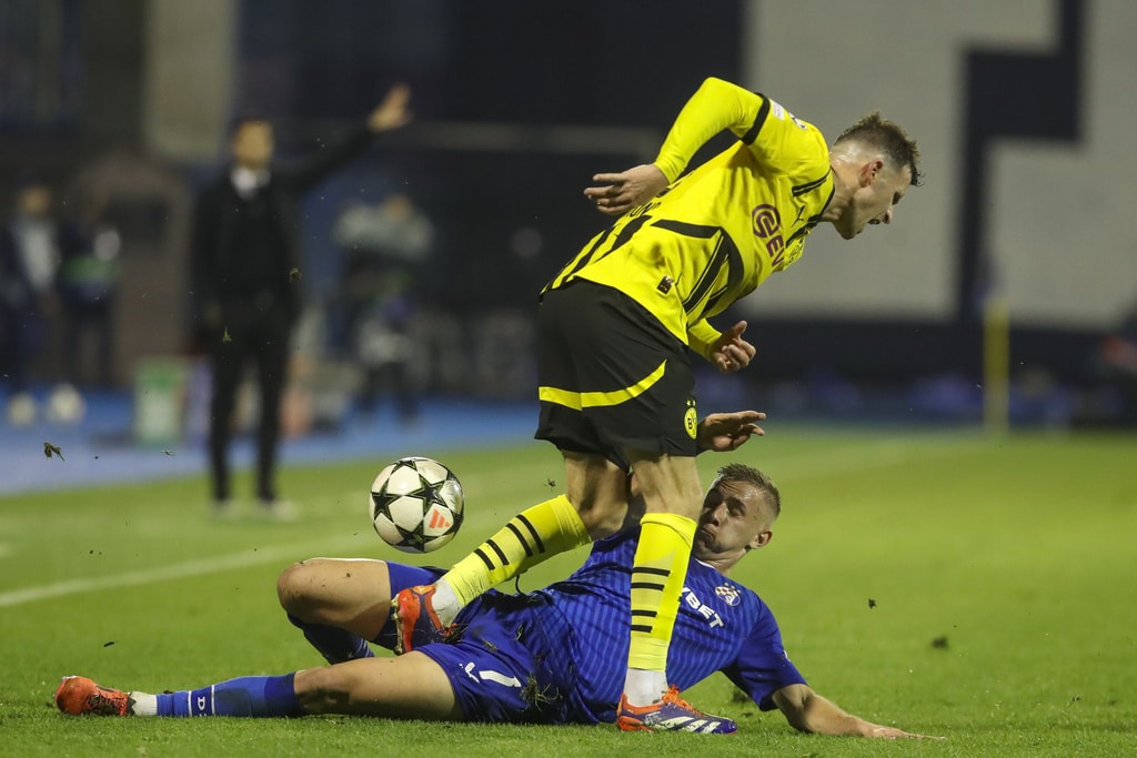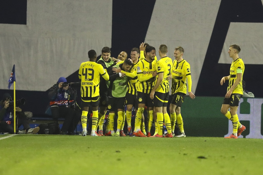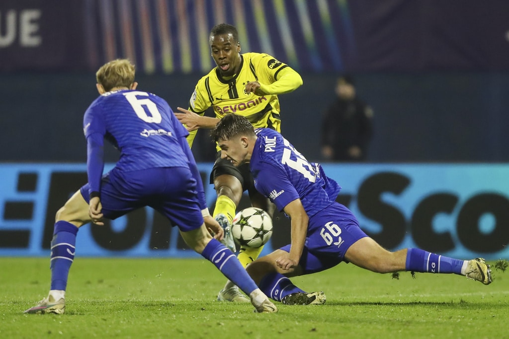 Dinamo’s Sandro Kulenovic, left, jumps for a header with Dortmund’s Ramy Bensebaini during the Champions League soccer match between Dinamo Zagreb and Dortmund at Maksimir Stadium, in Zagreb, Croatia, Thursday, Nov. 28, 2024. (AP Photo)Dortmund’s Julian Brandt, left, is challenged by Dinamo’s Ronael Pierre-Gabriel during the Champions League soccer match between Dinamo Zagreb and Dortmund at Maksimir Stadium, in Zagreb, Croatia, Wednesday, Nov. 27, 2024. (AP Photo)Dortmund’s Felix Nmecha, left, is in action during the Champions League soccer match between Dinamo Zagreb and Dortmund at Maksimir Stadium, in Zagreb, Croatia, Wednesday, Nov. 27, 2024. (AP Photo)Dortmund’s Jamie Bynoe-Gittens, right, celebrates after scoring his side’s opening goal during the Champions League soccer match between Dinamo Zagreb and Dortmund at Maksimir Stadium, in Zagreb, Croatia, Wednesday, Nov. 27, 2024. (AP Photo)Dortmund’s Jamie Bynoe-Gittens, centre, scores his side’s opening goal during the Champions League soccer match between Dinamo Zagreb and Dortmund at Maksimir Stadium, in Zagreb, Croatia, Wednesday, Nov. 27, 2024. (AP Photo)Dortmund’s Pascal Gross is tackled by Dinamo’s Luka Stojkovic during the Champions League soccer match between Dinamo Zagreb and Dortmund at Maksimir Stadium, in Zagreb, Croatia, Wednesday, Nov. 27, 2024. (AP Photo)Dortmund players celebrate after Ramy Bensebaini scored his side’s second goal during the Champions League soccer match between Dinamo Zagreb and Dortmund at Maksimir Stadium, in Zagreb, Croatia, Thursday, Nov. 28, 2024. (AP Photo)