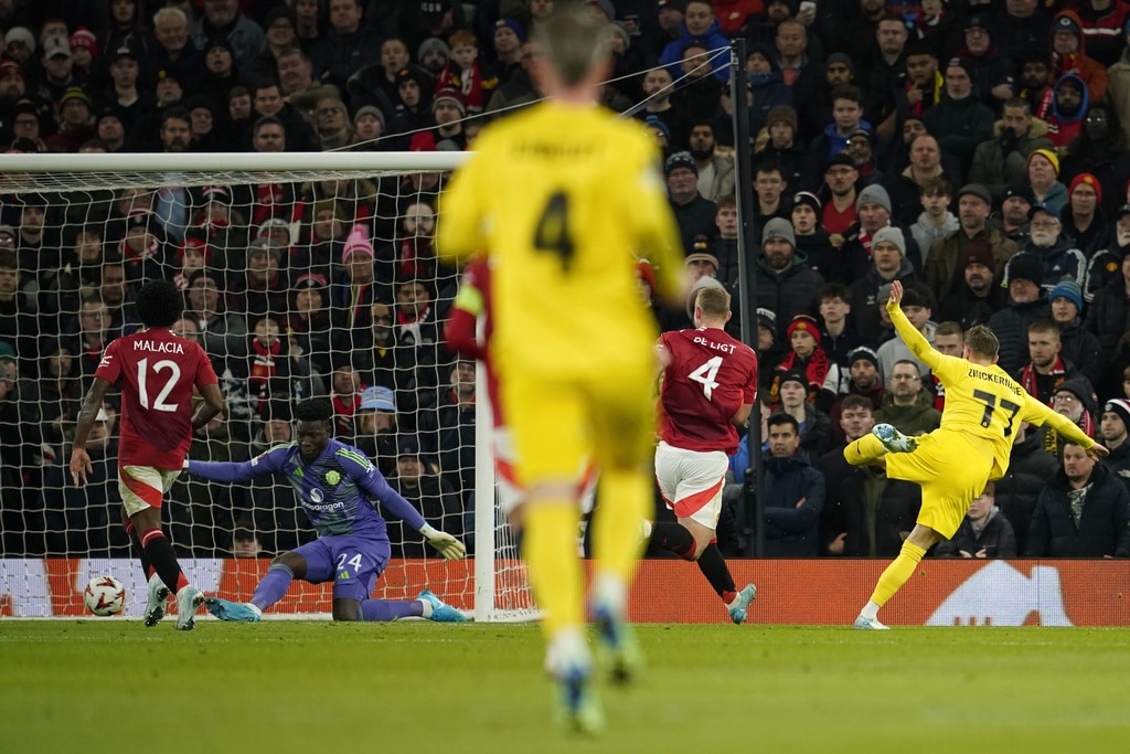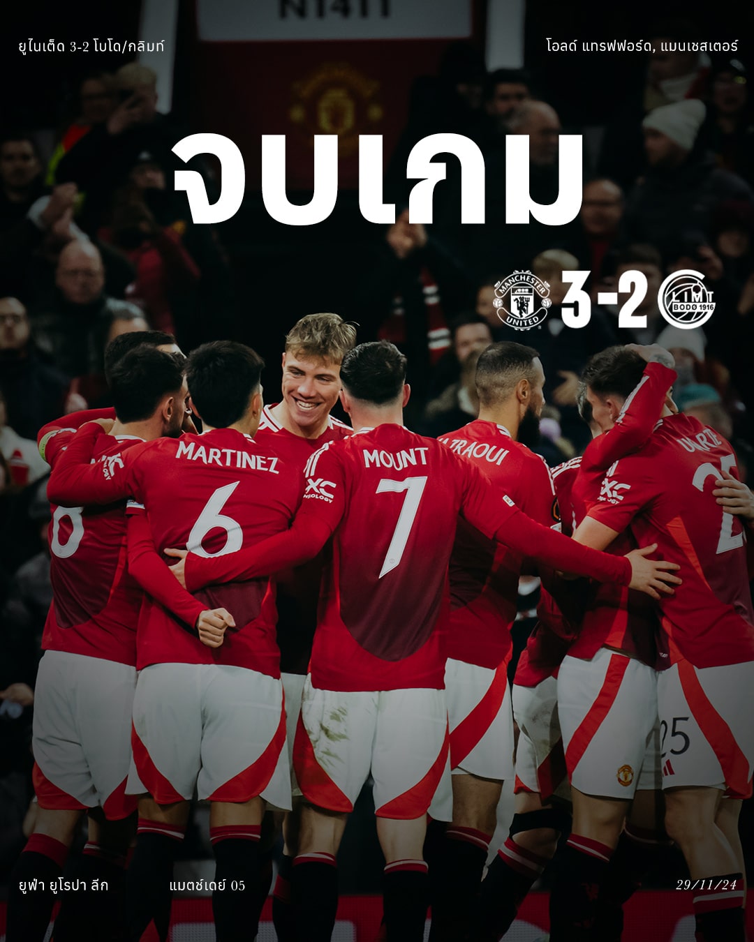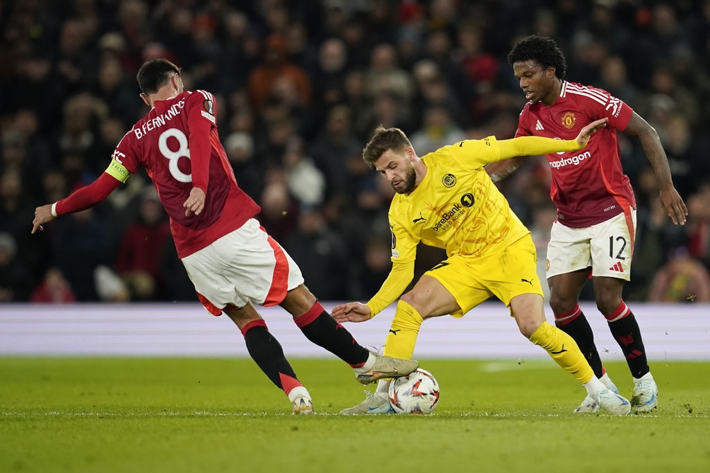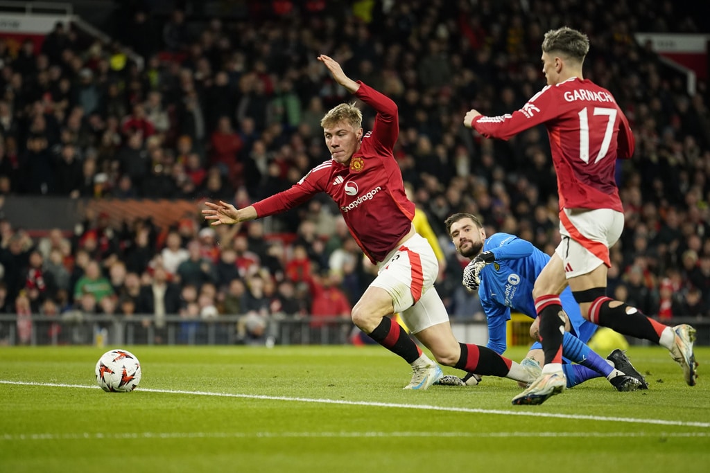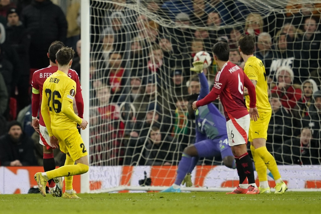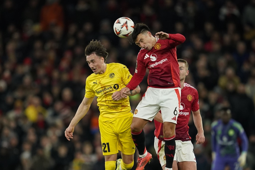 Manchester United’s Alejandro Garnacho, right, scores his side’s opening goal during the Europa League opening phase soccer match between Manchester United and Bodo Glimt, at the Old Trafford stadium in Manchester, England, Thursday, Nov. 28, 2024. (AP Photo/Dave Thompson)Glimt’s Andreas Helmersen, front, duels for the ball with Manchester United’s Matthijs de Ligt during the Europa League opening phase soccer match between Manchester United and Bodo Glimt, at the Old Trafford stadium in Manchester, England, Thursday, Nov. 28, 2024. (AP Photo/Dave Thompson)Manchester United’s Lisandro Martinez, right, duels for the ball with Glimt’s Andreas Helmersen during the Europa League opening phase soccer match between Manchester United and Bodo Glimt, at the Old Trafford stadium in Manchester, England, Thursday, Nov. 28, 2024. (AP Photo/Dave Thompson)Glimt’s Hakon Evjen, front left, scores his side’s opening goal during the Europa League opening phase soccer match between Manchester United and Bodo Glimt, at the Old Trafford stadium in Manchester, England, Thursday, Nov. 28, 2024. (AP Photo/Dave Thompson)Glimt’s Philip Zinckernagel, right, scores his side’s second goal during the Europa League opening phase soccer match between Manchester United and Bodo Glimt, at the Old Trafford stadium in Manchester, England, Thursday, Nov. 28, 2024. (AP Photo/Dave Thompson)Manchester United’s Rasmus Hojlund, left, celebrates after scoring his side’s second goal during the Europa League opening phase soccer match between Manchester United and Bodo Glimt, at the Old Trafford stadium in Manchester, England, Thursday, Nov. 28, 2024. (AP Photo/Dave Thompson)Glimt’s Philip Zinckernagel, center, duels for the ball with Manchester United’s Bruno Fernandes, left, during the Europa League opening phase soccer match between Manchester United and Bodo Glimt, at the Old Trafford stadium in Manchester, England, Thursday, Nov. 28, 2024. (AP Photo/Dave Thompson)Manchester United’s Rasmus Hojlund scores his side’s third goal during the Europa League opening phase soccer match between Manchester United and Bodo Glimt, at the Old Trafford stadium in Manchester, England, Thursday, Nov. 28, 2024. (AP Photo/Dave Thompson)