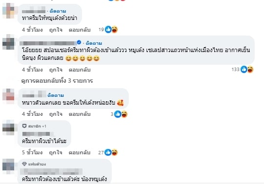 งานนี้เหล่าแฟนคลับทั่วประเทศต่างก็เข้ามาแสดงความคิดเห็นกันอย่างมากมาย โดยส่วนใหญ่เข้ามาแซวผิวแตก ๆ ของหมูเด้ง ทั้งยังเรียกร้องให้สปอนเซอร์ครีมทาผิวติดต่อหมูเด้งเป็นพรีเซนเตอร์โดยด่วนเลย เพราะแค่เริ่มหน้าหนาวแรกของหมูแดงก็ผิวแห้งขนาดนี้แล้ว เรียกว่าเป็นรอยยิ้มเล็ก ๆ ในวันเริ่มต้นเดือนสุดท้ายของปี 67 ได้น่ารักมากจริง ๆ