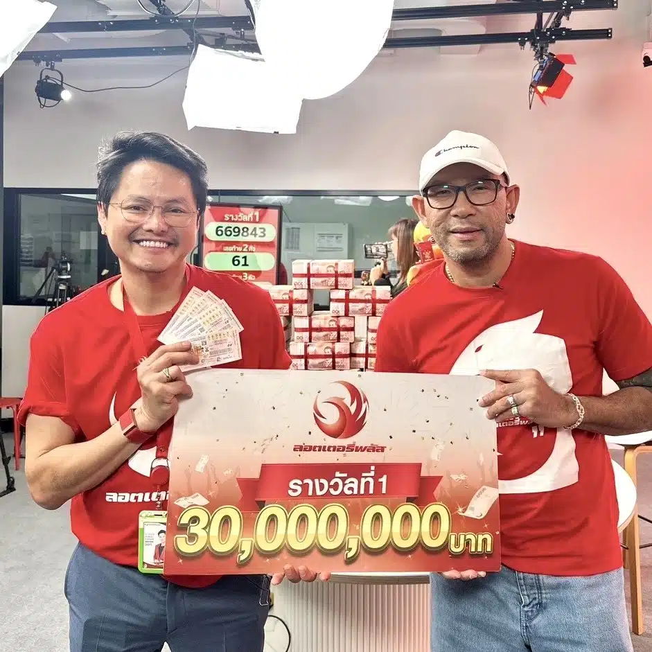 รางวัลที่ 1 อยู่ที่ ลอตเตอรี่พลัส 5 ใบ แตกต่อ 30 ล้านบาท เอ๋ เชิญยิ้ม ร่วมเป็นพยาน แถมดวงดีถูกรางวัลเลขท้าย 17 ใบ รับทรัพย์ต่ออีกงวดเกือบแสน