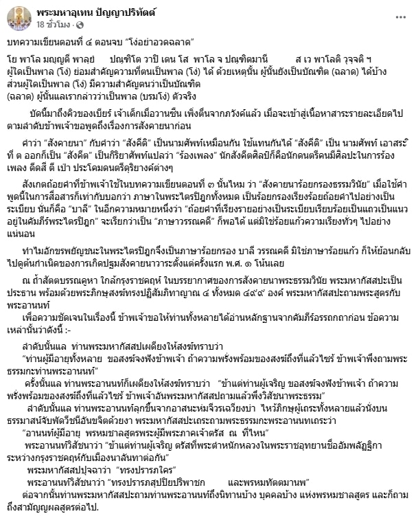 พระมหาอุเทน ฝากถึง อ.เบียร์ คนตื่นธรรม แค่เด็กเมื่อวานซืน ใช้พระพุทธเจ้าบังหน้า