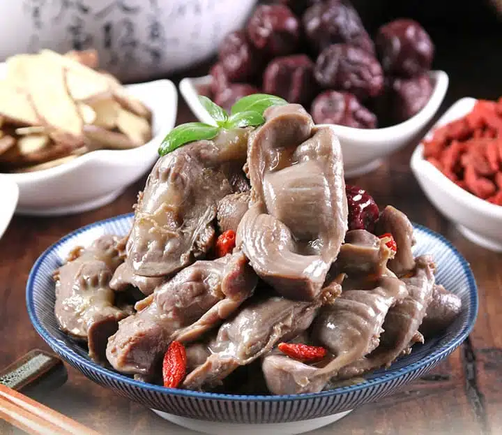 ในตัวไก่มีอวัยวะพิเศษชิ้นหนึ่ง ที่ทั้งหอม อร่อย เหนียวนุ่ม และมีคุณค่าทางโภชนาการสูงมาก นั่นก็คือ “กึ๋นไก่” กึ๋นไก่คือกระเพาะของไก่ ทำหน้าที่บดอาหารให้ละเอียด ในตำราแพทย์แผนจีนมีคำกล่าวว่า “กึ๋นไก่หนึ่งอัน มีค่าเท่ากับยาสามขนาน” ซึ่งแสดงให้เห็นถึงประโยชน์ของการกินกึ๋นไก่อย่างถูกวิธี