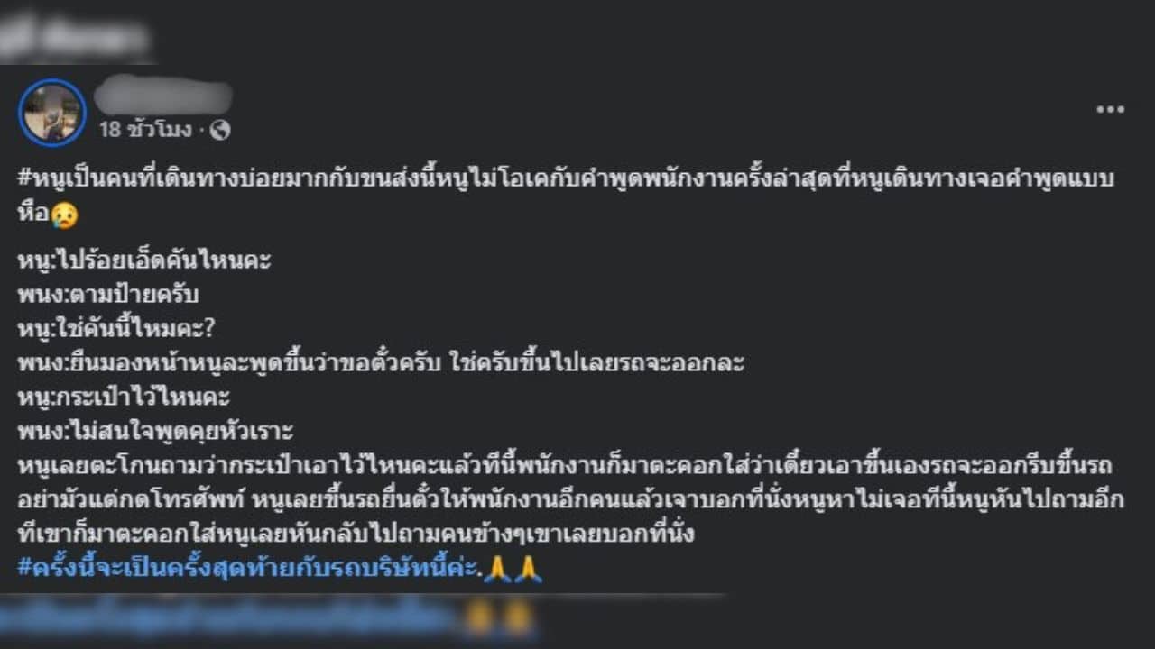 “#หนูเป็นคนที่เดินทางบ่อยมากกับขนส่งนี้หนูไม่โอเคกับคำพูดพนักงานครั้งล่าสุดที่หนูเดินทางเจอคำพูดแบบหือ”