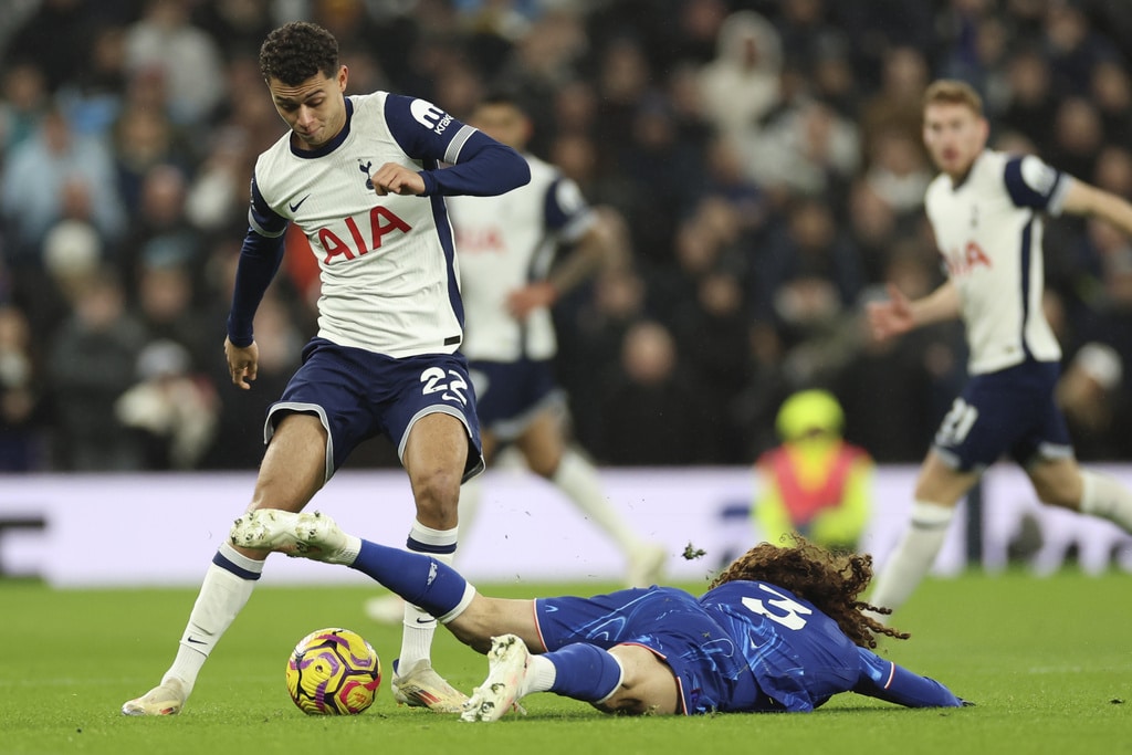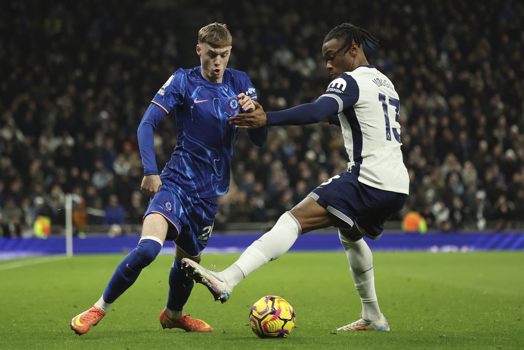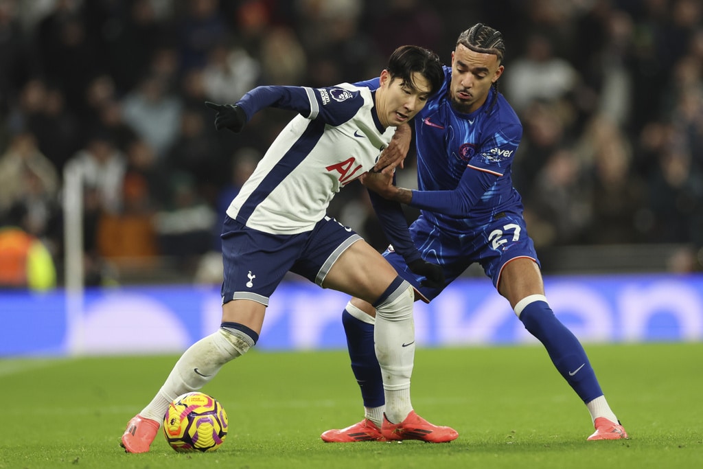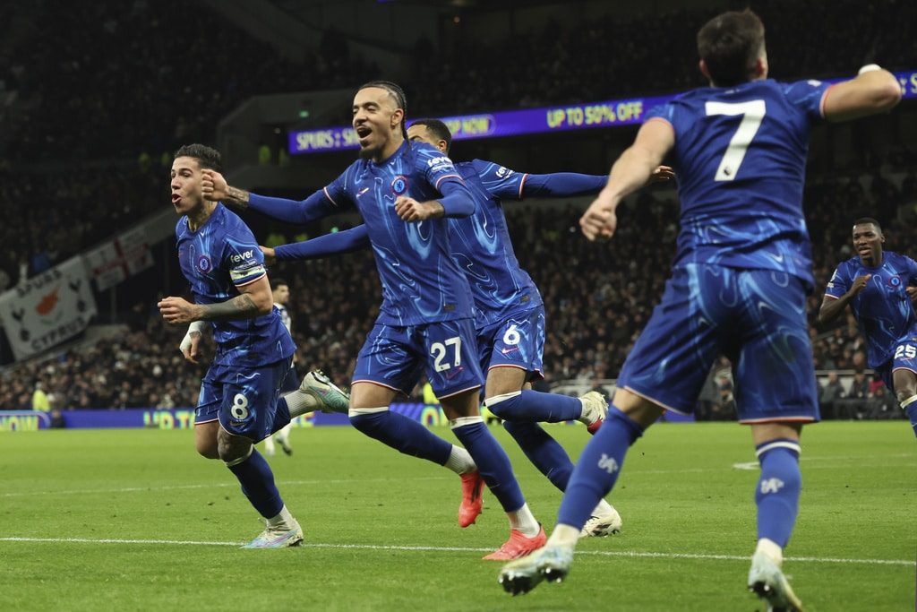 Tottenham’s Son Heung-min challenges for the ball with Chelsea’s Malo Gusto during the English Premier League soccer match between Tottenham Chelsea, at the Hotspur stadium in London, Sunday, Dec.8, 2024. (AP Photo/Ian Walton)Tottenham’s Brennan Johnson challenges for the ball with Chelsea’s Marc Cucurella during the English Premier League soccer match between Tottenham Chelsea, at the Hotspur stadium in London, Sunday, Dec.8, 2024. (AP Photo/Ian Walton)Chelsea’s Enzo Fernandez celebrates after scoring his side’s third goal during the English Premier League soccer match between Tottenham Chelsea, at the Hotspur stadium in London, Sunday, Dec.8, 2024. (AP Photo/Ian Walton)Chelsea’s Cole Palmer challenges for the ball with Tottenham’s Destiny Udogie during the English Premier League soccer match between Tottenham Chelsea, at the Hotspur stadium in London, Sunday, Dec.8, 2024. (AP Photo/Ian Walton)Chelsea’s Cole Palmer celebrates with his teammates after scoring his side’s fourth goal during the English Premier League soccer match between Tottenham Chelsea, at the Hotspur stadium in London, Sunday, Dec.8, 2024. (AP Photo/Ian Walton)Chelsea’s Enzo Fernandez celebrates after scoring his side’s third goal during the English Premier League soccer match between Tottenham Chelsea, at the Hotspur stadium in London, Sunday, Dec.8, 2024. (AP Photo/Ian Walton)Chelsea’s Enzo Fernandez celebrates with his teammates after scoring his side’s third goal during the English Premier League soccer match between Tottenham Chelsea, at the Hotspur stadium in London, Sunday, Dec.8, 2024. (AP Photo/Ian Walton)Tottenham’s Son Heung-min goes for the header with his teammate Pape Matar Sarr during the English Premier League soccer match between Tottenham Chelsea, at the Hotspur stadium in London, Sunday, Dec.8, 2024. (AP Photo/Ian Walton)