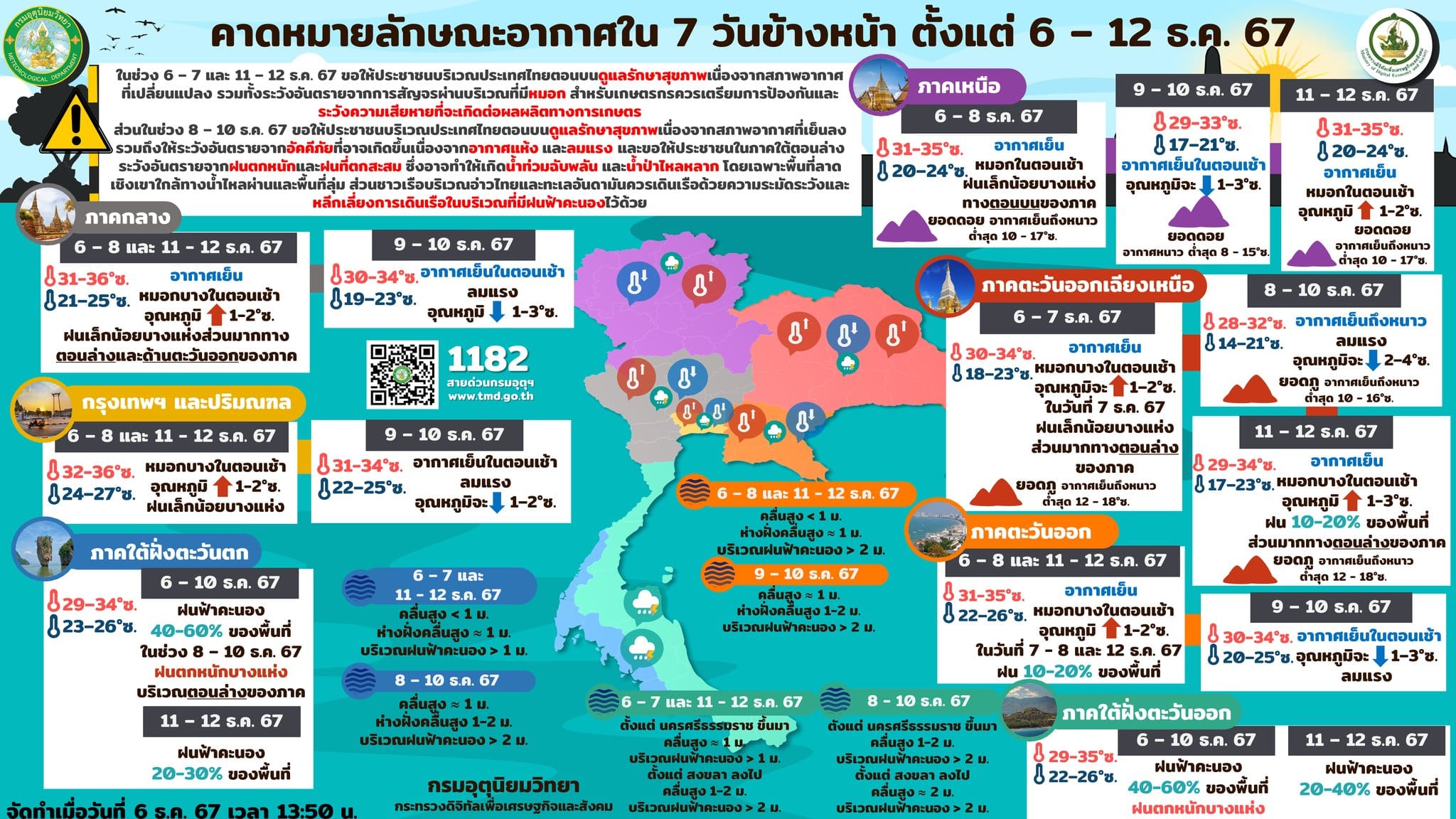 อากาศ 7 วัน ข้างหน้า ระหว่างวันที่ 6-12 ธันวาคม พ.ศ. 2567