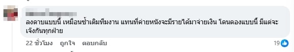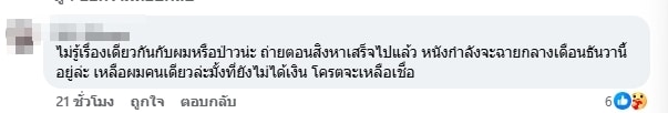 นอกจากนั้นก็มีคอมเมนต์หนึ่งคาดว่าน่าจะเป็น 1 ในทีมงานที่เคยร่วมงานกับค่ายหนังที่กำลังมีดราม่าดังกล่าว และคงจะเป็นผู้เสียหายที่ยังไม่ได้รับเงินว่าจ้างนี้ก็ได้เข้ามาคอมเมนต์ใต้โพสต์ด้วยเช่นกัน ระบุว่า “ไม่รู้เรื่องเดียวกันกับผมหรือป่าวน่ะ ถ่ายตอนสิงหาเสร็จไปแล้ว หนังกำลังจะฉายกลางเดือนธันวานี้อยู่ล่ะ เหลือผมคนเดียวล่ะมั้งที่ยังไม่ได้เงิน โครตจะเหลือเชื่อ” งานนี้ก็คงต้องติดตามกันต่อไปว่าสรุปคือค่ายไหนกันแน่ที่เป็นหนี้ค่าตัวทีมงาน หากมีความคืบหน้าอย่างไรทางทีมงานจะนำเสนอให้ทราบอีกครั้ง