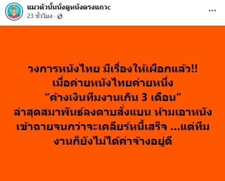 เพจดัง แหกหน้า ค่ายหนังไทย ติดเงินค่าจ้างทีมงานกว่า 3 เดือน จนสมาพันธ์ฯ ลงดาบ ห้ามส่งหนังเข้าฉายอีก จนกว่าจะใช้หนี้หมด ชาวเน็ตแห่เดาเป็นค่ายนี้?
