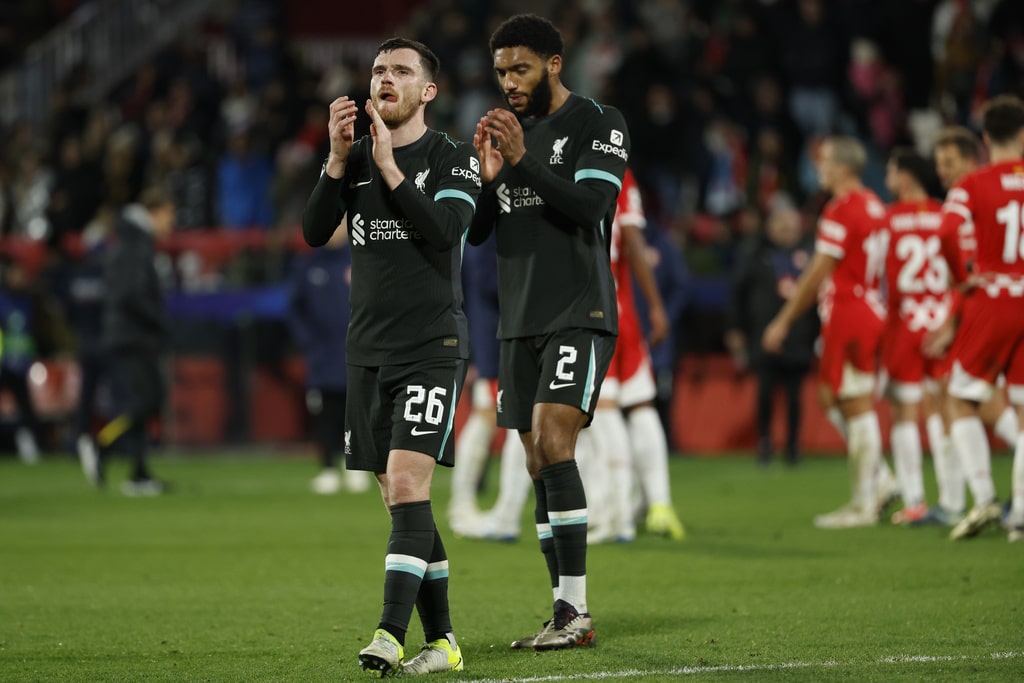 Liverpool’s goalkeeper Alisson kicks the ball over Girona’s Arnaut Danjuma during the Champions League soccer match between Girona and Liverpool at the Estadi Montilivi in Girona, Spain, Tuesday, Dec. 10, 2024. (AP Photo/Joan Monfort)Liverpool’s Andy Robertson, left, and Joe Gomez celebrate after their win in the Champions League soccer match against Girona at the Estadi Montilivi in Girona, Spain, Tuesday, Dec. 10, 2024. (AP Photo/Joan Monfort)Girona’s Alejandro Frances pulls Liverpool’s Cody Gakpo to prevent him from reaching the ball during the Champions League soccer match between Girona and Liverpool at the Estadi Montilivi in Girona, Spain, Tuesday, Dec. 10, 2024. (AP Photo/Joan Monfort)Liverpool’s Dominik Szoboszlai, left, is challenged by Girona’s Alejandro Frances during the Champions League soccer match between Girona and Liverpool at the Estadi Montilivi in Girona, Spain, Tuesday, Dec. 10, 2024. (AP Photo/Joan Monfort)Liverpool’s Luis Diaz makes an attempt to score before a penalty is awarded to Liverpool during the Champions League soccer match between Girona and Liverpool at the Estadi Montilivi in Girona, Spain, Tuesday, Dec. 10, 2024. (AP Photo/Joan Monfort)Liverpool’s Mohamed Salah, left, and Girona’s Daley Blind vie for the ball during the Champions League soccer match between Girona and Liverpool at the Estadi Montilivi in Girona, Spain, Tuesday, Dec. 10, 2024. (AP Photo/Joan Monfort)Liverpool’s Mohamed Salah takes control of the ball during the Champions League soccer match between Girona and Liverpool at the Estadi Montilivi in Girona, Spain, Tuesday, Dec. 10, 2024. (AP Photo/Joan Monfort)Girona’s Arnaut Danjuma kicks the ball during the Champions League soccer match between Girona and Liverpool at the Estadi Montilivi in Girona, Spain, Tuesday, Dec. 10, 2024. (AP Photo/Joan Monfort)Girona’s Daley Blind is challenged by Liverpool’s Mohamed Salah, right, during the Champions League soccer match between Girona and Liverpool at the Estadi Montilivi in Girona, Spain, Tuesday, Dec. 10, 2024. (AP Photo/Joan Monfort)