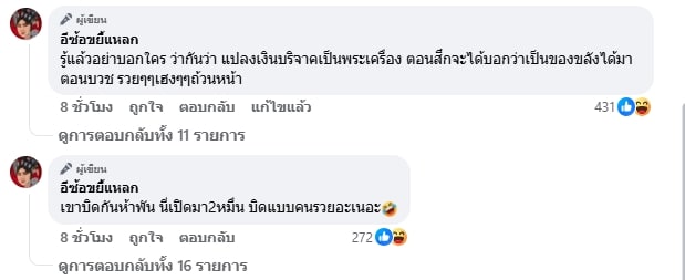 นอกจากนั้น เพจอีซ้อเองก็ยังให้ข้อมูลเพิ่มเติมมาอีกว่า อาจจะเป็นการแปลงเงินที่ญาติโยมบริจาคมาเป็นพระเครื่อง เพื่อเวลาที่สึกออกไปแล้วจะได้บอกว่าพระเครื่องเหล่านี้เป็นของขลังได้มาจากตอนบวชก็เป็นได้