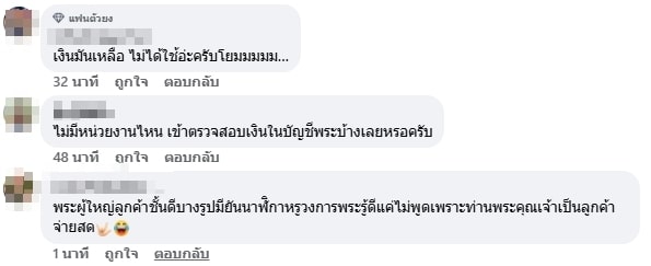 ด้านชาวเน็ตที่ได้เห็นโพสต์ดังกล่าวต่างก็เข้ามาแสดงความคิดเห็นกันอย่างมากมาย โดยบางคนมองว่าอาจจะเป็นเฟซบุ๊กที่เจ้าของร้านพระเครื่องสร้างขึ้นมาเอง บ้างก็บอกว่าวงการนี้และเรื่องแบบนี้มีให้ดูเยอะแยะไปหมด เอาเงินที่ญาติโยมทำบุญไปใช้ส่วนตัว ทำไมถึงไม่มีการตรรวจสอบอะไรเกี่ยวกับบัญชีการเงินของพระได้เลย ซึ่งเรื่องนี้จะเป็นความจริงหรือไม่ก็คงต้องรอให้ทางผู้ที่มีส่วนเกี่ยวข้องตรวจสอบกันอีกครั้งหนึ่ง เพื่อความกระจ่างในข้อเท็จจริง