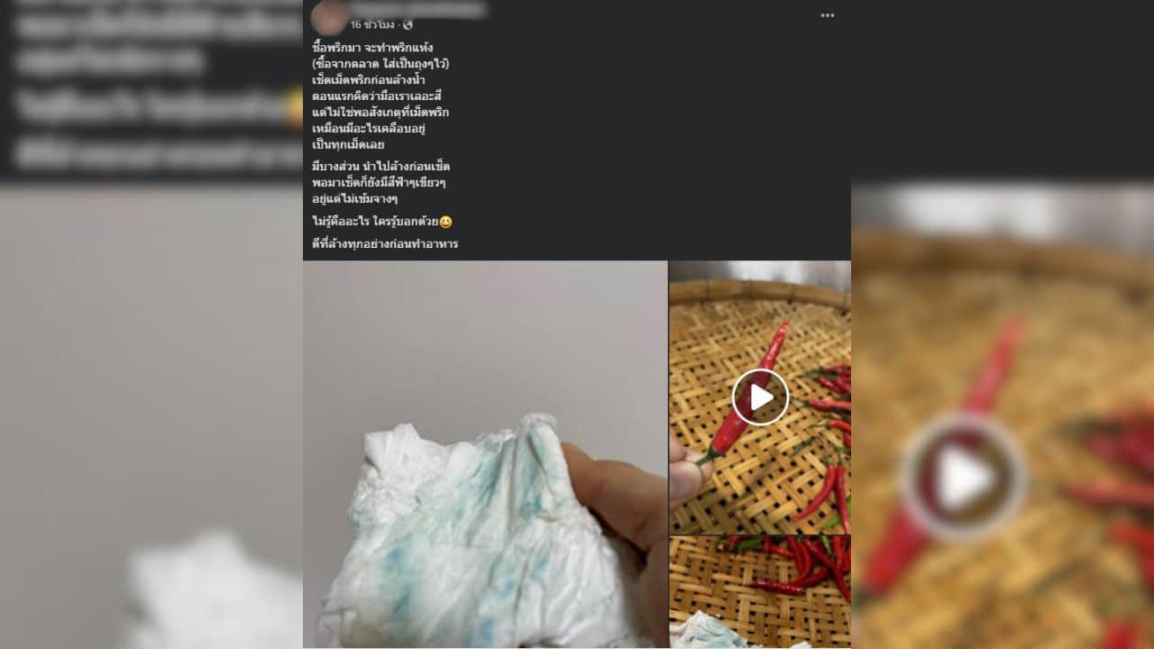 สาวโพสต์ลงกลุ่ม ซื้อพริกมาทำพริกแห้ง เจอคราบสีฟ้า ข้อใจว่าคืออะไร สุดท้ายเจอเฉลย คือสารที่ทางยุโรปไม่อนุญาตให้ใช้