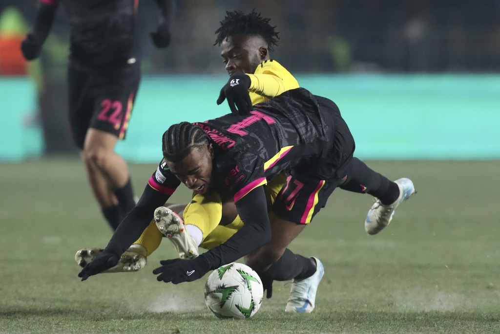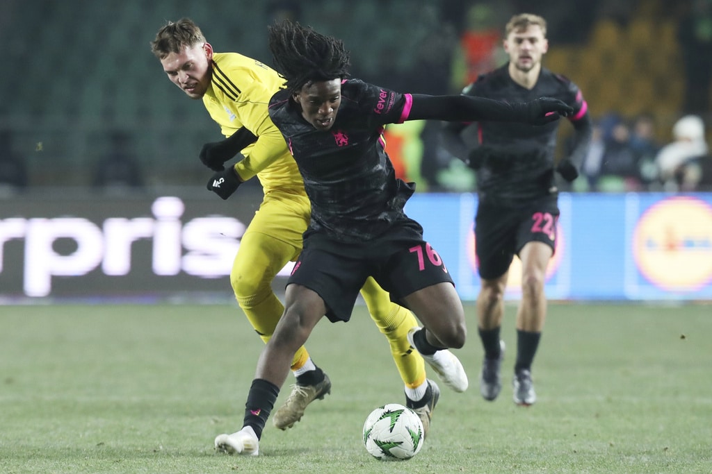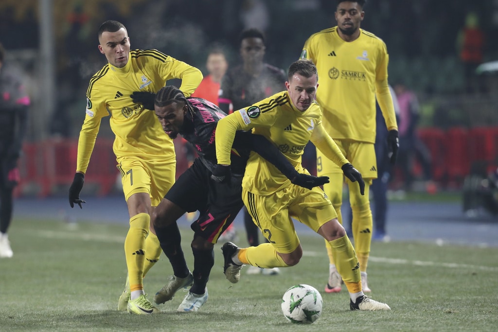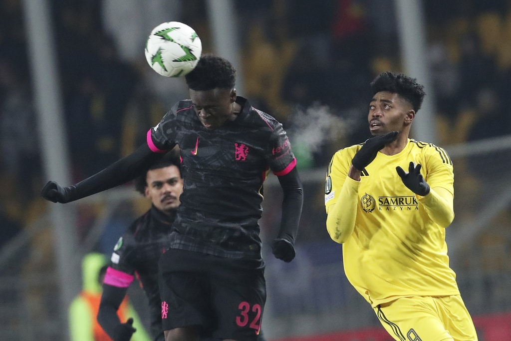 Chelsea’s Shumaira Mheuka, centre, fights for the ball with Astana’s Kipras Kazukolovas during the Europa Conference League opening phase soccer match between Astana and Chelsea at the Almaty Ortalyk stadium in Almaty, Kazakhstan, Thursday, Dec. 12, 2024. (AP Photo)Chelsea’s Carney Chukwuemeka, front, fights for the ball with Astana’s Barnes Osei during the Europa Conference League opening phase soccer match between Astana and Chelsea at the Almaty Ortalyk stadium in Almaty, Kazakhstan, Thursday, Dec. 12, 2024. (AP Photo)Chelsea’s Marc Guiu, left, fights for the ball with Astana’s Kipras Kazukolovas during the Europa Conference League opening phase soccer match between Astana and Chelsea at the Almaty Ortalyk stadium in Almaty, Kazakhstan, Thursday, Dec. 12, 2024. (AP Photo)Chelsea’s Carney Chukwuemeka, centre, fights for the ball with Astana’s Karlo Bartolec, right, and Max Ebong during the Europa Conference League opening phase soccer match between Astana and Chelsea at the Almaty Ortalyk stadium in Almaty, Kazakhstan, Thursday, Dec. 12, 2024. (AP Photo)Chelsea’s Tyrique George, left, fights for the ball with Astana’s Geoffrey Charles Chinedu during the Europa Conference League opening phase soccer match between Astana and Chelsea at the Almaty Ortalyk stadium in Almaty, Kazakhstan, Thursday, Dec. 12, 2024. (AP Photo)Chelsea’s Renato Veiga, left, fights for the ball with Astana’s Marin Tomasov during the Europa Conference League opening phase soccer match between Astana and Chelsea at the Almaty Ortalyk stadium in Almaty, Kazakhstan, Thursday, Dec. 12, 2024. (AP Photo)