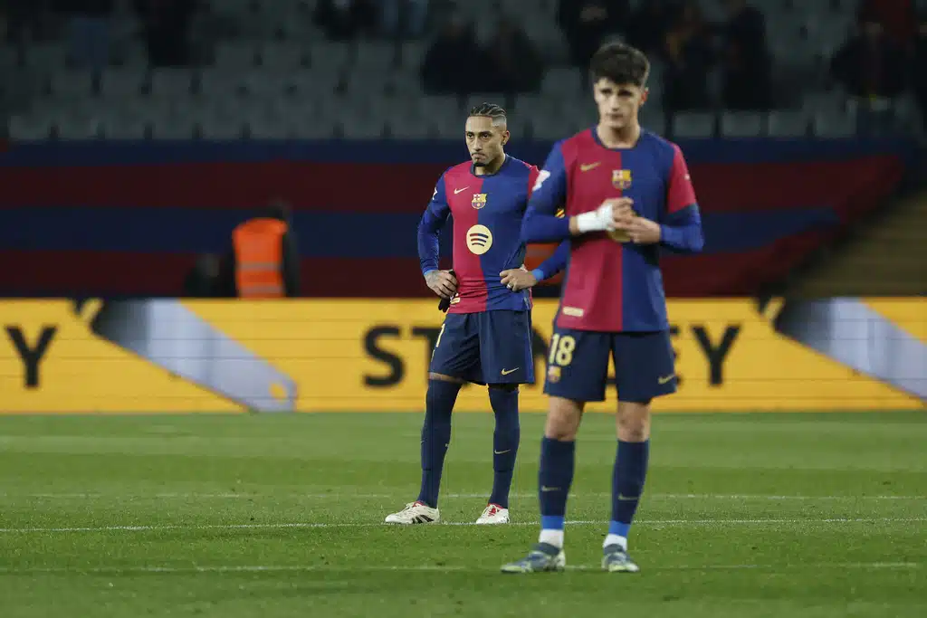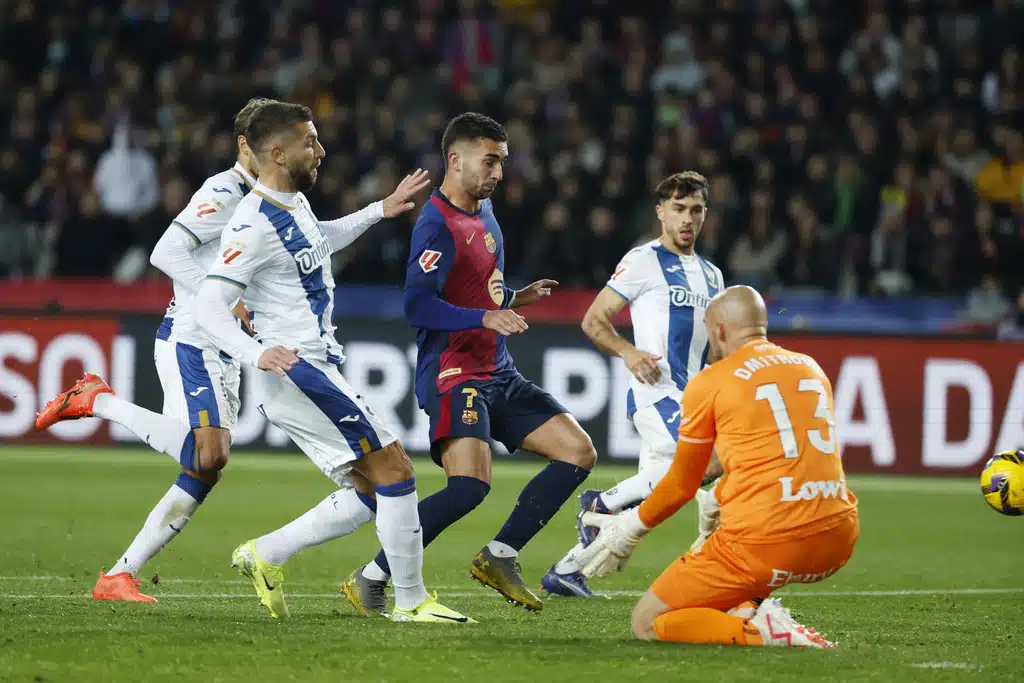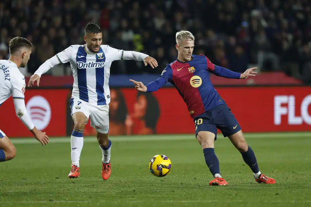 Barcelona’s Robert Lewandowski challenges for the ball during the Spanish La Liga soccer match between Barcelona and Leganes at the Lluis Companys Olympic Stadium in Barcelona, Spain, Sunday, Dec. 15, 2024. (AP Photo/Joan Monfort)CORRECTS TEAM AND NAME OF THE LEFT PLAYER – Barcelona’s Raphinha, left, and Pau Victor react after the Spanish La Liga soccer match between Barcelona and Leganes at the Lluis Companys Olympic Stadium in Barcelona, Spain, Sunday, Dec. 15, 2024. (AP Photo/Joan Monfort)Barcelona’s Jules Kounde, left, reacts during the Spanish La Liga soccer match between Barcelona and Leganes at the Lluis Companys Olympic Stadium in Barcelona, Spain, Sunday, Dec. 15, 2024. (AP Photo/Joan Monfort)Barcelona’s Ferran Torres, centre, and Leganes’ goalkeeper Marko Dmitrovic, right, challenge for the ball during the Spanish La Liga soccer match between Barcelona and Leganes at the Lluis Companys Olympic Stadium in Barcelona, Spain, Sunday, Dec. 15, 2024. (AP Photo/Joan Monfort)Barcelona’s Marc Casado, top, and Leganes’ Javi Hernandez challenge for the ball during the Spanish La Liga soccer match between Barcelona and Leganes at the Lluis Companys Olympic Stadium in Barcelona, Spain, Sunday, Dec. 15, 2024. (AP Photo/Joan Monfort)Leganes’ Oscar Rodriguez, left, and Barcelona’s Jules Kounde challenge for the ball during the Spanish La Liga soccer match between Barcelona and Leganes at the Lluis Companys Olympic Stadium in Barcelona, Spain, Sunday, Dec. 15, 2024. (AP Photo/Joan Monfort)Barcelona’s Dani Olmo, centre, reacts during the Spanish La Liga soccer match between Barcelona and Leganes at the Lluis Companys Olympic Stadium in Barcelona, Spain, Sunday, Dec. 15, 2024. (AP Photo/Joan Monfort)Barcelona’s Dani Olmo, right, and Leganes’ Oscar Rodriguez challenge for the ball during the Spanish La Liga soccer match between Barcelona and Leganes at the Lluis Companys Olympic Stadium in Barcelona, Spain, Sunday, Dec. 15, 2024. (AP Photo/Joan Monfort)Barcelona’s Lamine Yamal, centre, and Leganes’ Renato Tapia, bottom challenge for the ball during the Spanish La Liga soccer match between Barcelona and Leganes at the Lluis Companys Olympic Stadium in Barcelona, Spain, Sunday, Dec. 15, 2024. (AP Photo/Joan Monfort)