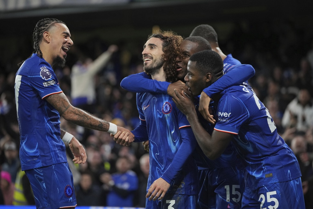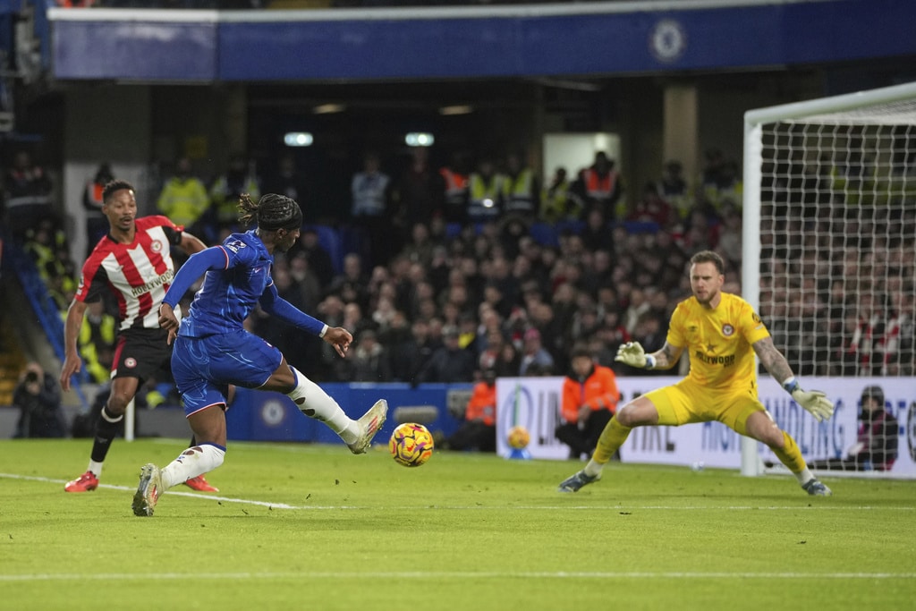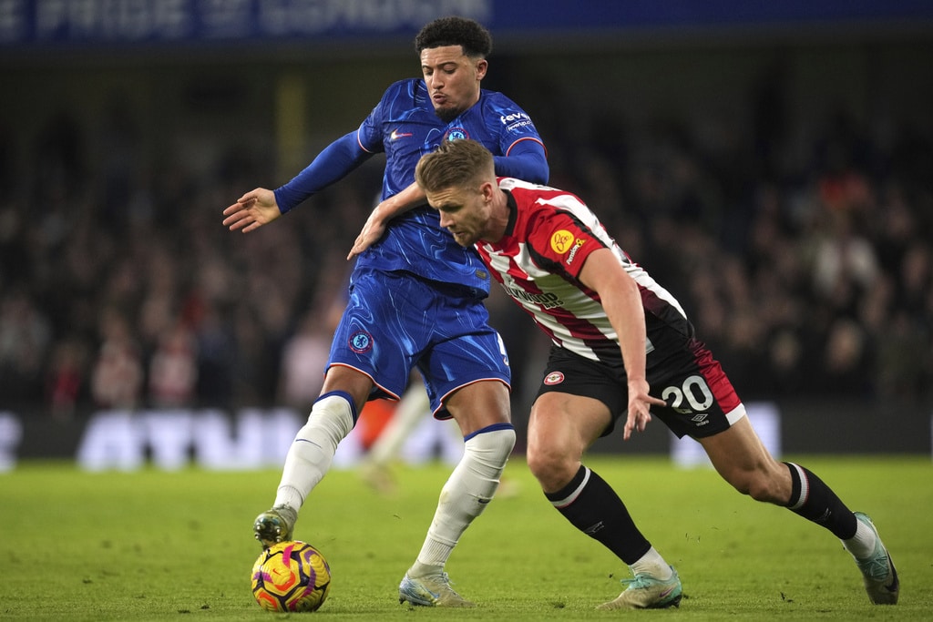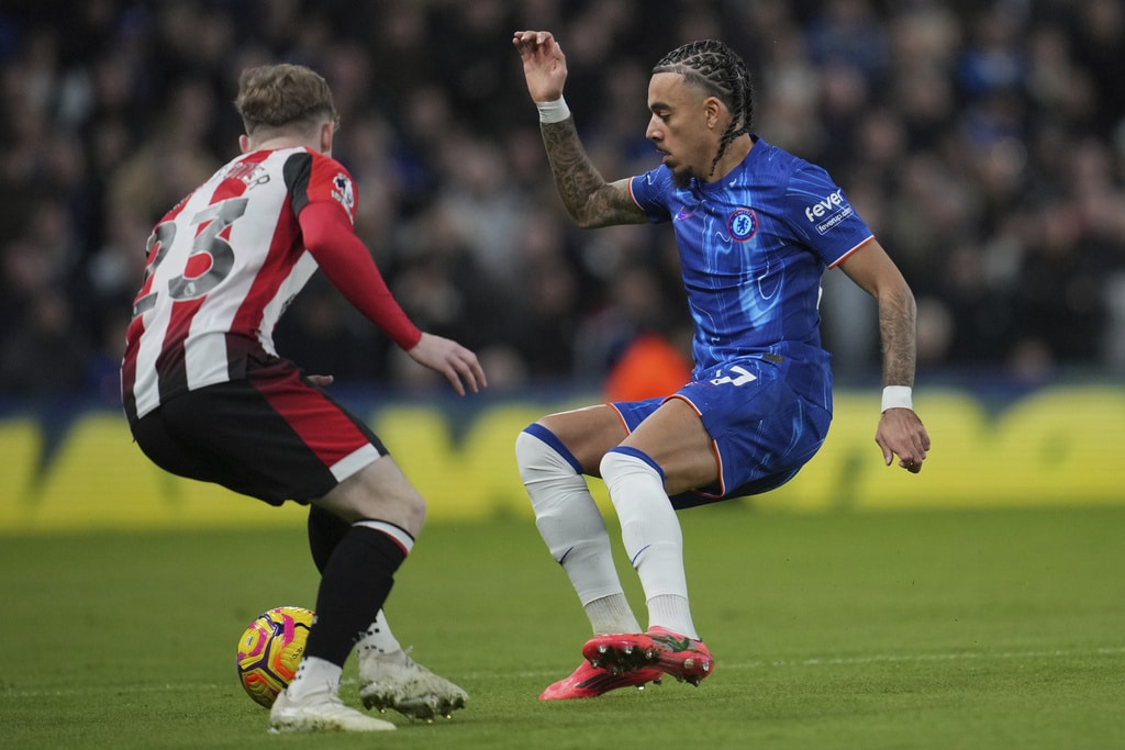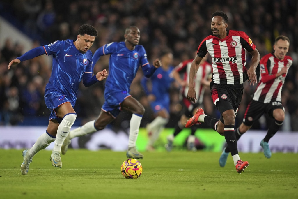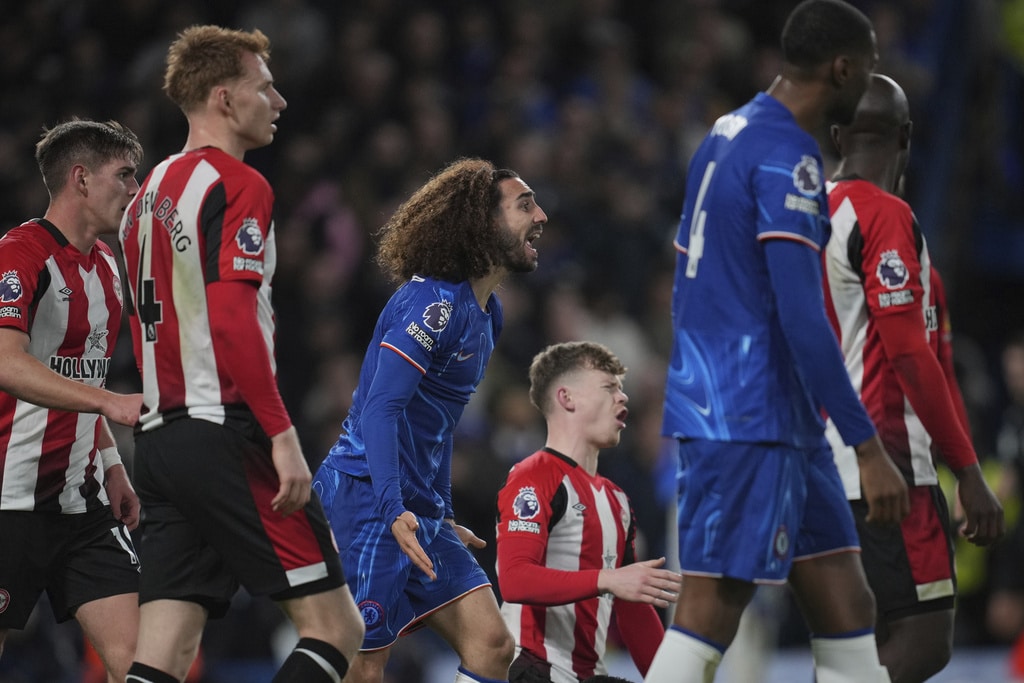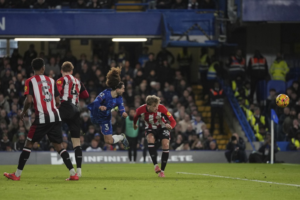Chelsea’s Malo Gusto, right, vies for the ball with Brentford’s Keane Lewis-Potter during the English Premier League soccer match between Chelsea and Brentford at Stamford Bridge in London, Sunday, Dec. 15, 2024. (AP Photo/Kin Cheung)Chelsea’s Jordon Sancho vies for the ball with Brentford’s Kristoffer Ajer during the English Premier League soccer match between Chelsea and Brentford at Stamford Bridge in London, Sunday, Dec. 15, 2024. (AP Photo/Kin Cheung)Brentford’s Christian Norgaard, left, defends the ball from Chelsea’s Cole Palmer during the English Premier League soccer match between Chelsea and Brentford at Stamford Bridge in London, Sunday, Dec. 15, 2024. (AP Photo/Kin Cheung)Chelsea’s Marc Cucurella centre, reacts to a decision by referee Peter Banks during the English Premier League soccer match between Chelsea and Brentford at Stamford Bridge in London, Sunday, Dec. 15, 2024. (AP Photo/Kin Cheung)Chelsea’s Marc Cucurella, second left, celebrates with teammates after scoring the opening goal of the game during the English Premier League soccer match between Chelsea and Brentford at Stamford Bridge in London, Sunday, Dec. 15, 2024. (AP Photo/Kin Cheung)Chelsea’s Marc Cucurella, centre, heads the ball and scores the opening goal of the game during the English Premier League soccer match between Chelsea and Brentford at Stamford Bridge in London, Sunday, Dec. 15, 2024. (AP Photo/Kin Cheung)Chelsea’s Noni Madueke takes a shot at goal but fails to score during the English Premier League soccer match between Chelsea and Brentford at Stamford Bridge in London, Sunday, Dec. 15, 2024. (AP Photo/Kin Cheung)Chelsea’s Jordon Sancho takes the ball forward during the English Premier League soccer match between Chelsea and Brentford at Stamford Bridge in London, Sunday, Dec. 15, 2024. (AP Photo/Kin Cheung)