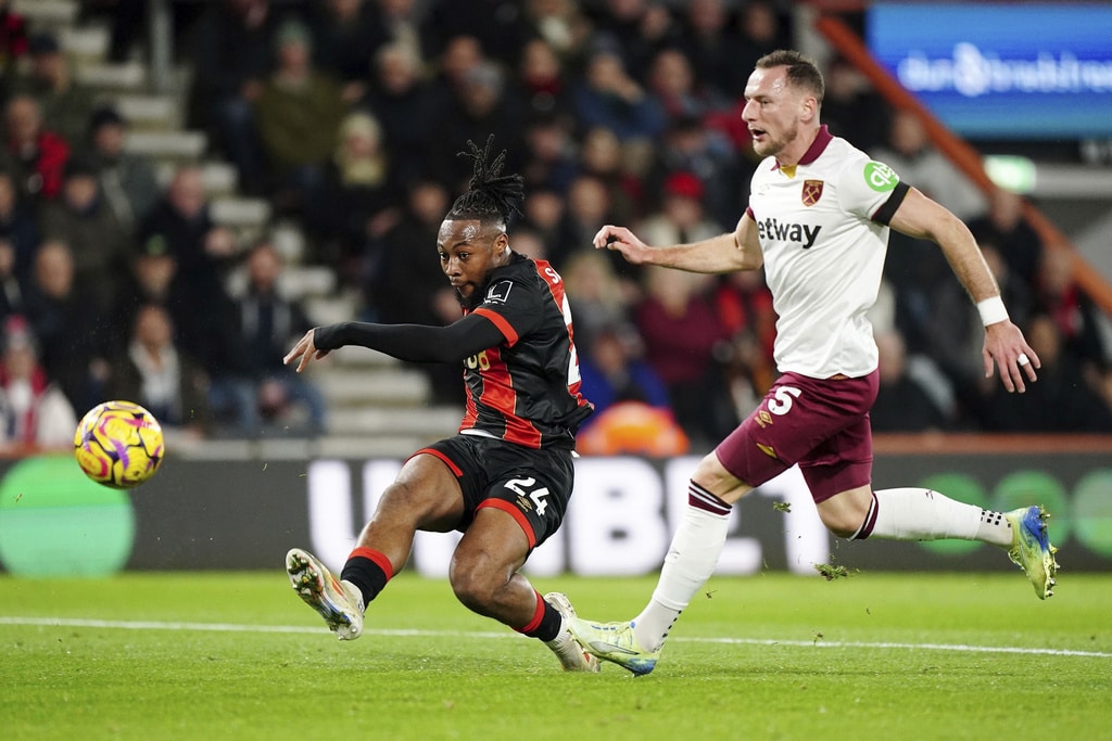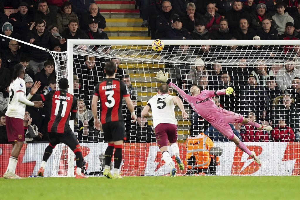 Bournemouth’s Antoine Semenyo, left, attempts a shot on goal, during the English Premier League soccer match between Bournemouth and West Ham United, at the Vitality Stadium, in Bournemouth, England, Monday, Dec. 16, 2024. (Zac Goodwin/PA via AP)Bournemouth’s Enes Unal scores his side’s first goal of the game from a free-kick during the English Premier League soccer match between Bournemouth and West Ham United, at the Vitality Stadium, in Bournemouth, England, Monday, Dec. 16, 2024. (Zac Goodwin/PA via AP)Bournemouth’s Enes Unal scores his side’s first goal of the game from a free-kick , during the English Premier League soccer match between Bournemouth and West Ham United, at the Vitality Stadium, in Bournemouth, England, Monday, Dec. 16, 2024. (Zac Goodwin/PA via AP)West Ham United’s Lucas Paqueta scores the opening goal from a penalty, during the English Premier League soccer match between Bournemouth and West Ham United, at the Vitality Stadium, in Bournemouth, England, Monday, Dec. 16, 2024. (Zac Goodwin/PA via AP)Police walk outside the Abundant Life Christian School following a shooting, Monday, Dec. 16, 2024 in Madison, Wis. (AP Photo/Morry Gash)Referee Chris Kavanagh awards a penalty to West Ham United following a VAR check, during the English Premier League soccer match between Bournemouth and West Ham United, at the Vitality Stadium, in Bournemouth, England, Monday, Dec. 16, 2024. (Zac Goodwin/PA via AP)West Ham United manager Julen Lopetegui gestures on the touchline, during the English Premier League soccer match between Bournemouth and West Ham United, at the Vitality Stadium, in Bournemouth, England, Monday, Dec. 16, 2024. (Zac Goodwin/PA via AP)West Ham United’s Lucas Paqueta, left, and Bournemouth’s Dean Huijsen vie for the ball during the English Premier League soccer match between Bournemouth and West Ham United, at the Vitality Stadium, in Bournemouth, England, Monday, Dec. 16, 2024. (Zac Goodwin/PA via AP)