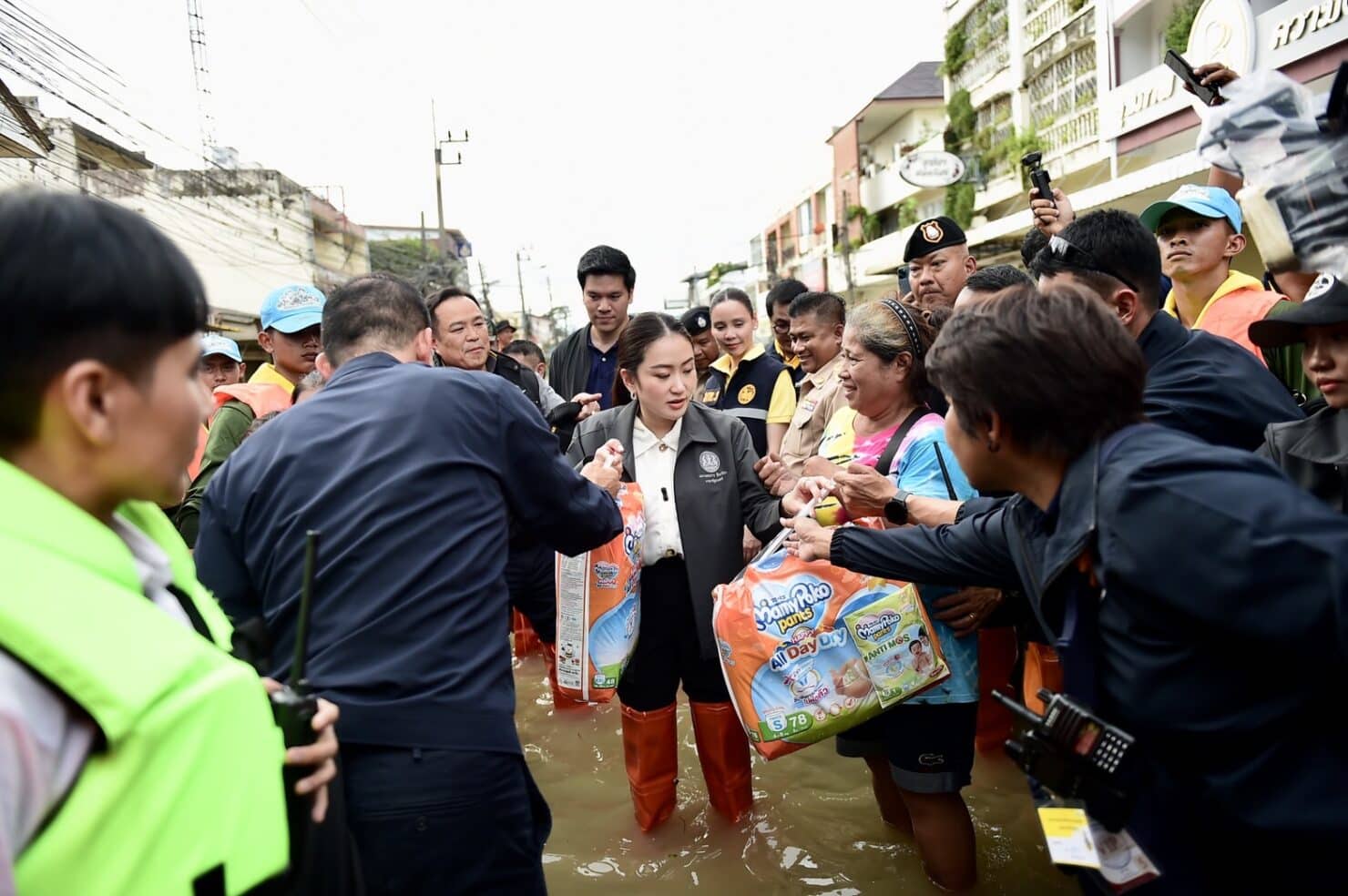 นายกอิ๊งค์ ควงสามี แจกถุงยังชีพช่วยเหลือผู้ประสบภัยน้ำท่วม ชาวบ้านดีใจ ชมสวย ด้านนายกย้ำขอให้ลงทะเบียนรับเงินเยียวยา
