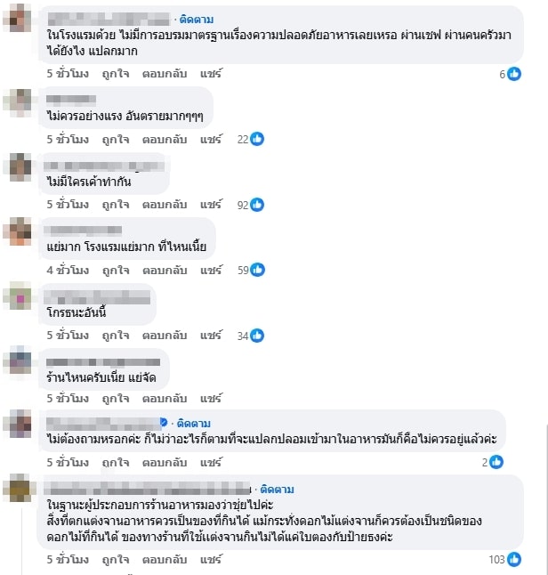 ด้านชาวเน็ตที่ได้อ่านเรื่องราวดังกล่าวต่างก็พากันเข้ามาแสดงความคิดเห็นกันอย่างมากมาย โดยส่วนใหญ่ต่างวิจารณ์การบริการของโรงแรมแห่งนี้ที่ใช้ลูกแม็กซ์เย็บอาหารเพื่อตกแต่งจาน ซึ่งเป็นสิ่งที่ไม่สมควร และเชฟทุกคนควรรู้อยู่แล้วว่าทุกสิ่งที่อยู่ในจานอาหารจะต้องกินได้ แม้แต่จะเป็นของตกแต่งก็ตาม ทั้งยังแนะนำให้เจ้าของโพสต์ฟ้องโรงแรมนี้ และไปเขียนรีวิวใน Google maps เพื่อเตือนลูกค้าท่านอื่น ๆ ให้ระวัง และแก้เผ็ดโรงแรมให้ออกมารับผิดชอบเรื่องนี้ด้วย