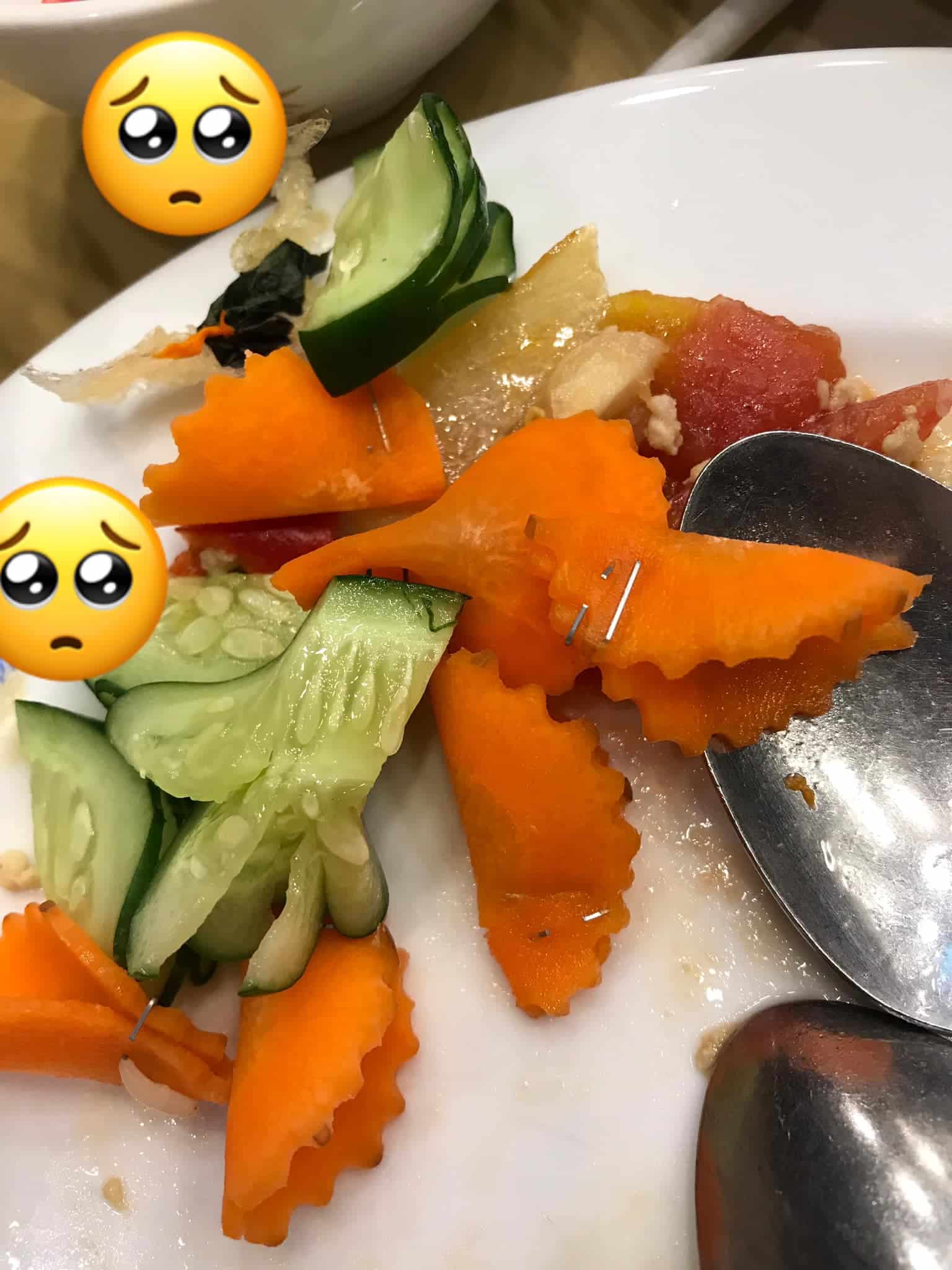 โซเชียลเดือด สาวโพสต์เตือนภัย โรงแรมหรู จัดเลี้ยงอาหารสุดชุ่ย ใช้แม็กซ์เย็บกระดาษเย็บผักตกแต่งจาน เกือบให้ลูก 3 ขวบกิน ชาวเน็ตแนะ “ต้องฟ้องเท่านั้น”